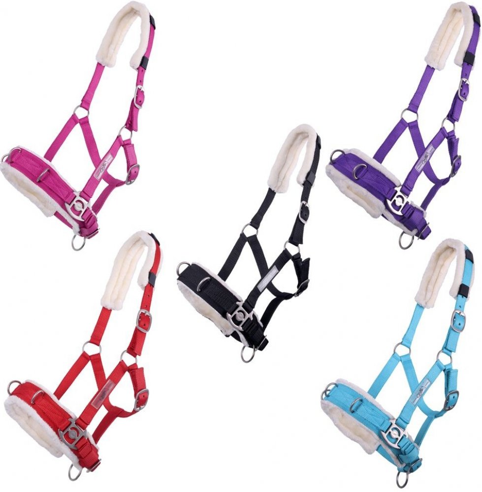 Lonžovací ohlávka s možností nastavení velikosti na nánosníku, nátylníku a podhrdelníku. Barvy: černá, sky, fuchsia, červená, limeta, fialová. Velikosti: Shetty, Pony, Cob a Full.