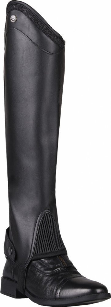 Velmi kvalitní minichapsy vyrobené ze syntetické kůže. Opatřeny jsou zipem za zadní straně, který je jištěn drukem. Podél zipu je elastická vložka, díky které se minichapsy dokonale přizpůsobí. Zdobeny jsou třpytivým horním okrajem a malým kovovým znakem „Q“. K dispozici také ve velikostech pro standardní holeň. Lze prát na 30°C.