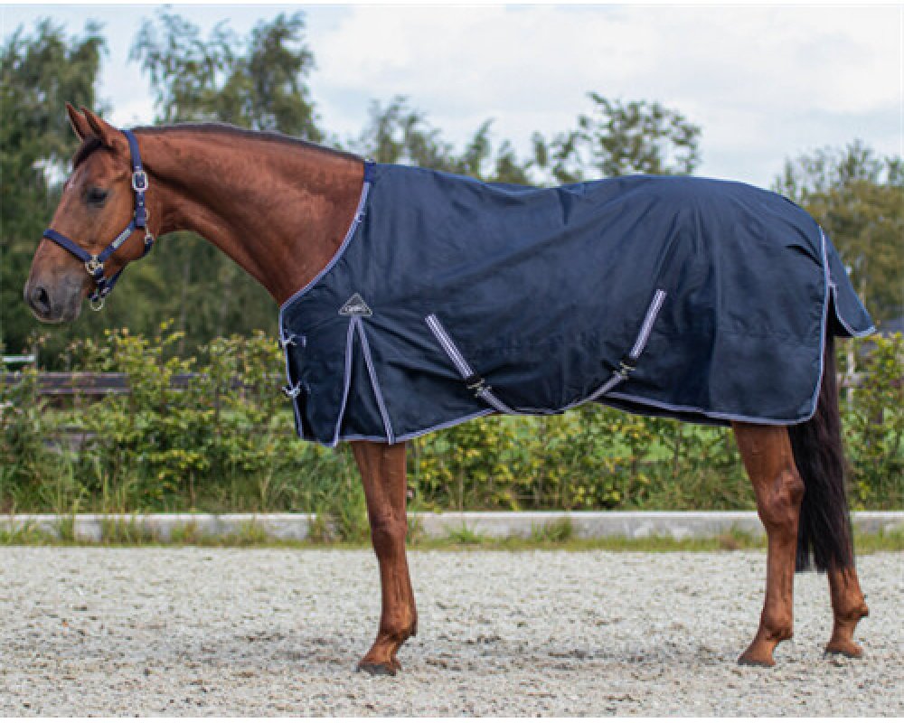 Velmi kvalitní nepromokavá deka s fleecem značky QHP v modré barvě.