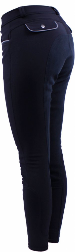 Softshelové tréninkové rajtky pro chladné dny s celokoženým sedem. Podšité fleecem, vepředu zdobené kapsy kamínky, vzadu kapsy na knoflíčky, nohavice zakončené lycrou.