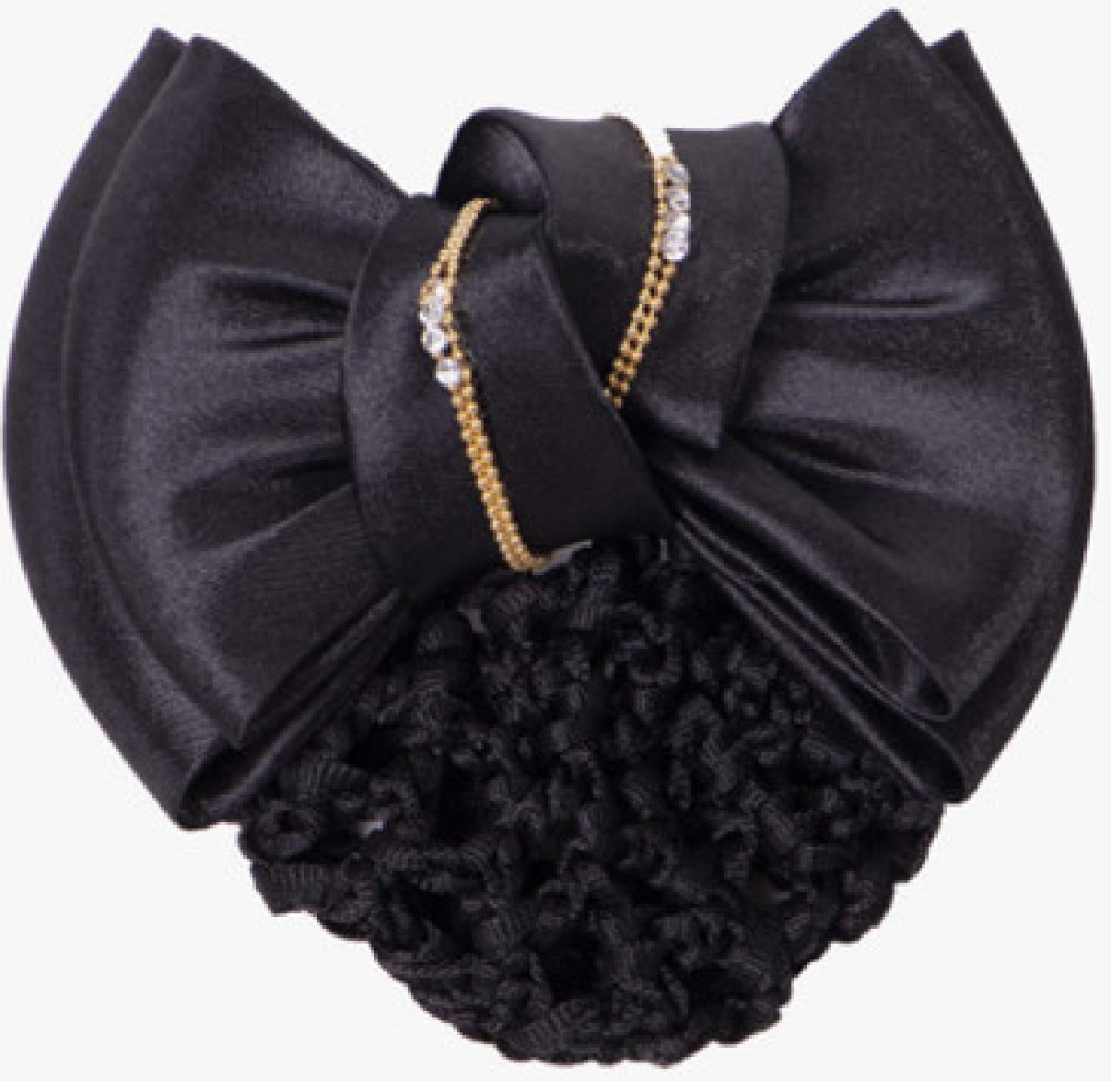 Síťka do vlasů zdobena saténovou mašlí. Mašle je zdobena zlatým řetízkem se stříbrnými kamínky, které dodávají elegantní vzhled. Opatřena je patentním špendlíkem, pomocí kterého se síťka snadno připevňuje. K dispozici také v modré barvě.