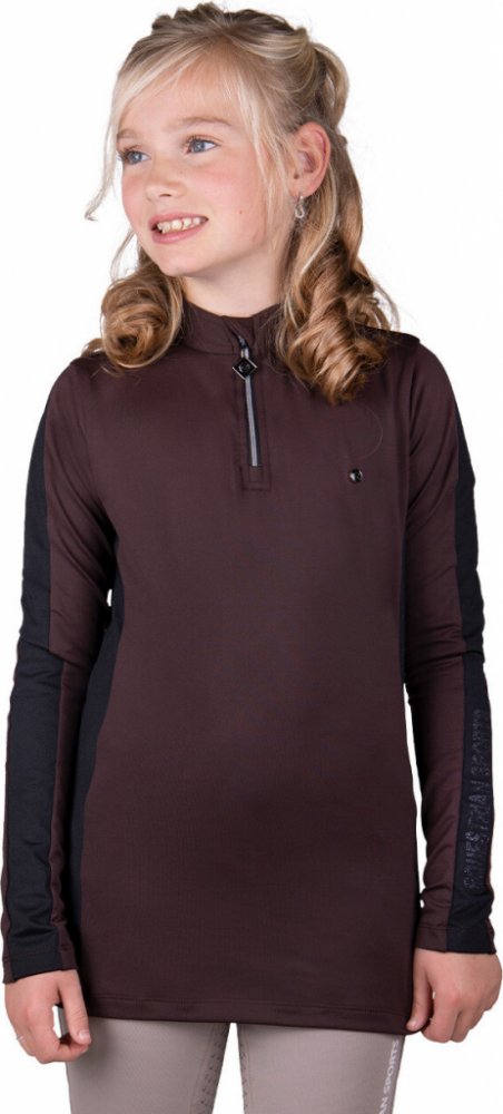 Velmi kvalitní dětské tričko opatřeno teplou podšívkou, která Vás zahřeje během chladných zimních dní. Vyrobeno je z vysoce elastického materiálu, který je prodyšný a poskytuje maximální pohodlí. Vybaveno je dlouhým rukávem, vyšším límečkem a krátkým zipem u krku. Rukávy jsou zdobeny černým pruhem a stříbrným nápisem „Equestrian Sports“. Tričko je k dispozici také ve velikostech pro dospělé a skvě...