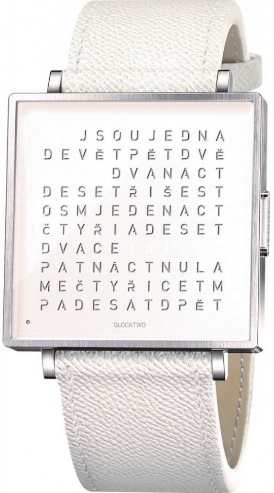 Základem každých hodin QLOCKTWO® je matice 110 zdánlivě náhodných znaků. Jednotlivá písmena však každých pět minut vytvoří celá slova, kterými zobrazí aktuální čas. Každá rozsvícená tečka v rohu znamená ještě minutu navíc. QLOCKTWO® W přenáší netradiční princip vyjádření času na vaše zápěstí. Slova se objeví pouhým stisknutím tlačítka.