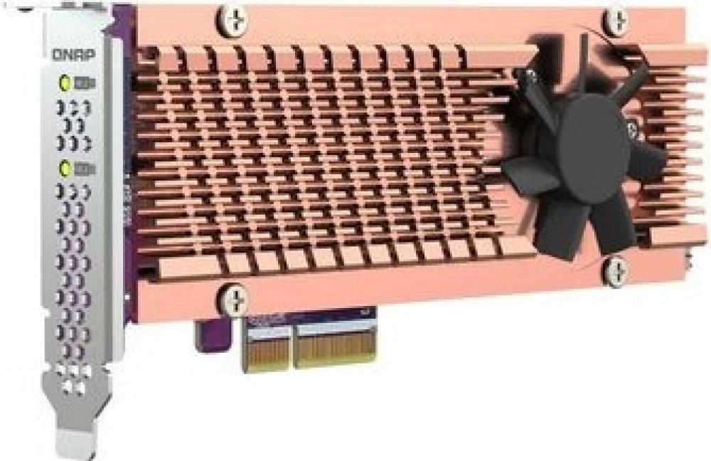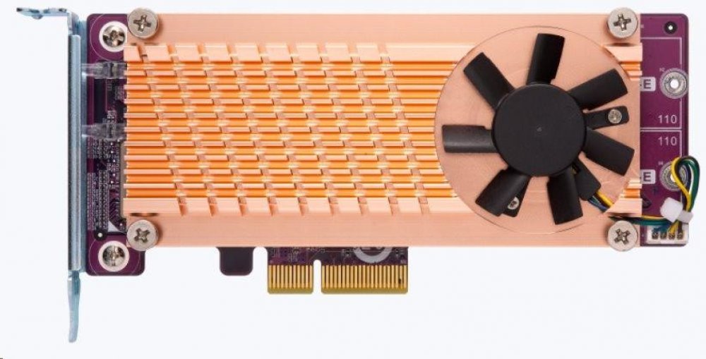 QNAP QM2-2P-344A pro PC i NAS Přidání dvou disků M.2 NVMe SSD do NAS pomocí rozšiřující karty PCIe 3.0 Přidáním jednotek NVMe SSD do zařízení QNAP NAS pomocí karty QM2-2P-344A rozšíříte jeho úložnou kapacitu a zvýšíte výkon. Efektivní architektura QM2-2P-344A umožňuje snadnou instalaci disků NVMe SSD a maximalizaci jejich výkonu díky tichému chladicímu modulu. Stránky produktu: https://www.qnap.com/cs-cz/product/qm2-2p-344a Technické specifikace Konektor 2 x M.2 22110 nebo 2280 PCIe (Gen 3 x 4) NVMe SSD sloty PCIe a kanály PCIe Gen 3 x 4 Držák Nízkoprofilový (výchozí), nízkoprofilové ploché a plné výškové držáky jsou také součástí. Rozměry (D x Š x V) 170,5 × 19,3 × 68,9 mm Poznámka [NAS] Doporučené modely (aktualizujte prosím svůj NAS na nejnovější verzi) Prosím zkontrolujte seznam kompatibility M.2 SSD a QM2 instalační příručku Poznámka [PC] Poznámka: Systém BIOS a operační systém (OS) musí podporovat PCIe NVMe SSD. Prosím odkažte se na technickou příručku vašeho systému nebo konzultujte s dodavatelem. Standard Warranty 1 rok .