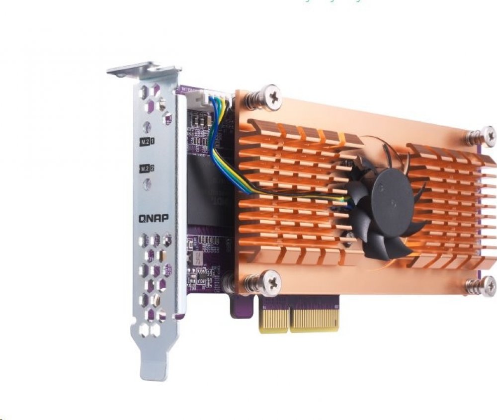 Zlepšete výkon. Rozšiřte kompatibilní NAS značky QNAP o nízkoprofilovou kartu QNAP QM2-2P-244A s možností připojení dvojice SSD. K dispozici dostanete pro SSD 2 sloty M.2 22110 nebo 2280 PCIe (Gen2 ×4) NVMe. Vysoký výkon trvale udrží díky pokročilému chlazení s heatsinkem a ventilátorem, který reguluje otáčky dle aktuální teploty. Klíčové vlastnosti rozšiřující karty QNAP QM2-2P-244A Pro dvě SSD M...