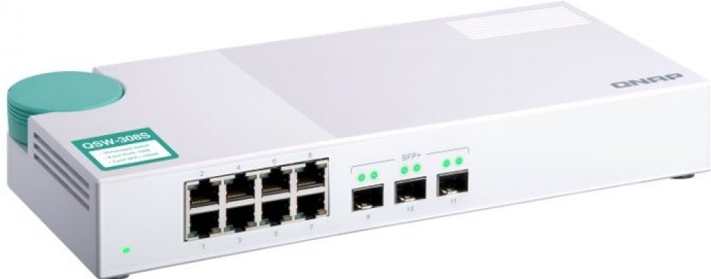 *Zařízení QSW-308S nabízí tři porty 10GbE SFP+ a osm portů pro gigabitovou síť pro připojení různých zařízení.