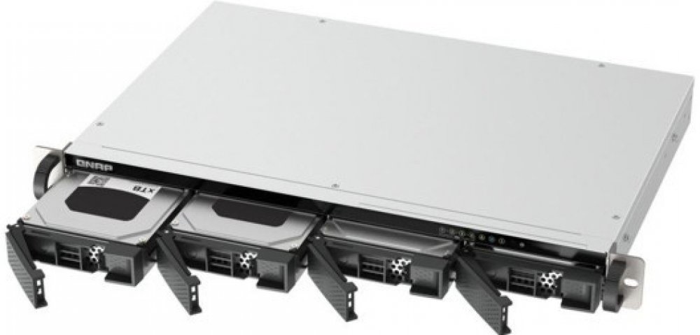 Rackový server NAS určený pro firmy hledající efektivní centralizovanou správu dat. Díky designu s malou hloubkou je vhodný pro instalaci v menších rackových skříních. Zařízení pohání čtyřjádrový procesor, taktovaný na 2,0 GHz, doplněný o 4 GB operační paměti. Pro ukládání dat jsou připraveny čtyři pozice pro 3,5" nebo 2,5" disky. Síťové připojení zajišťují dva 2,5 GbE RJ-45 porty, k dispozici jsou také dva USB 3.0 konektory. Samozřejmostí je šifrovací modul.