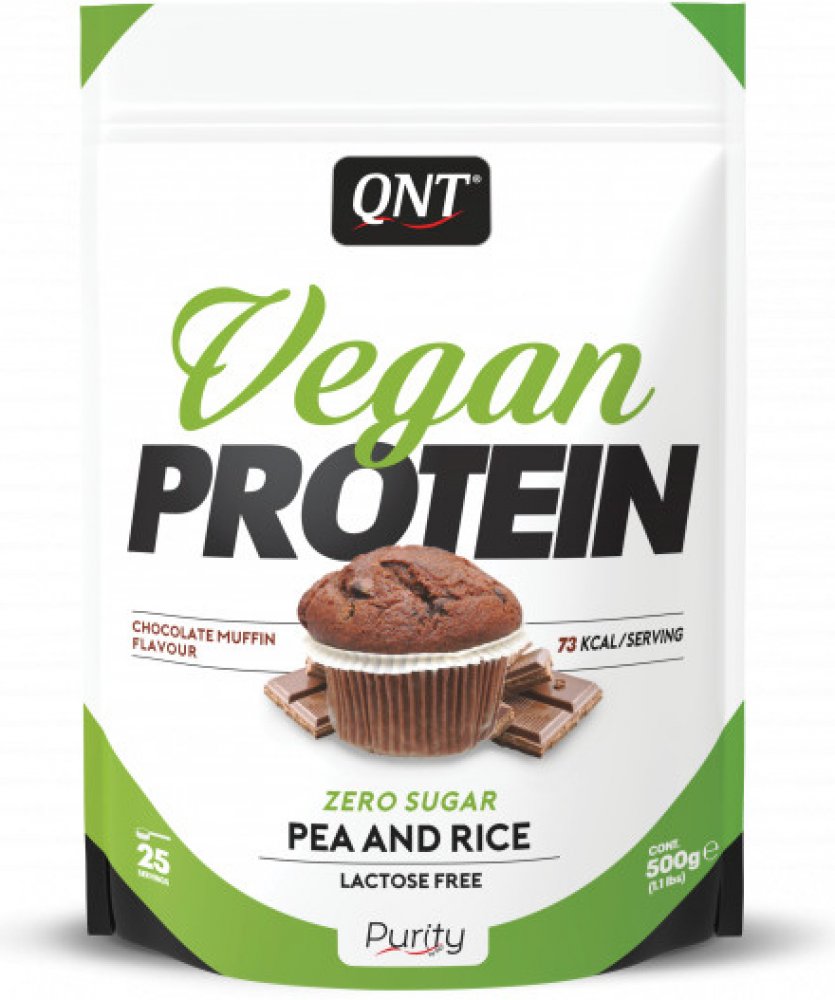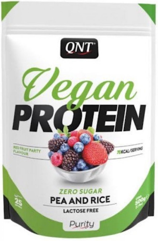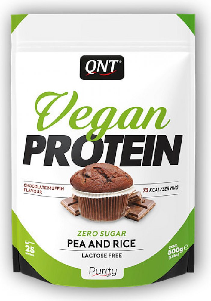 QNT 500 g veganské práškové 20.0 g 25 ks 73.0 kcal hrachový protein, rýžový protein 8.0 g/100 ml