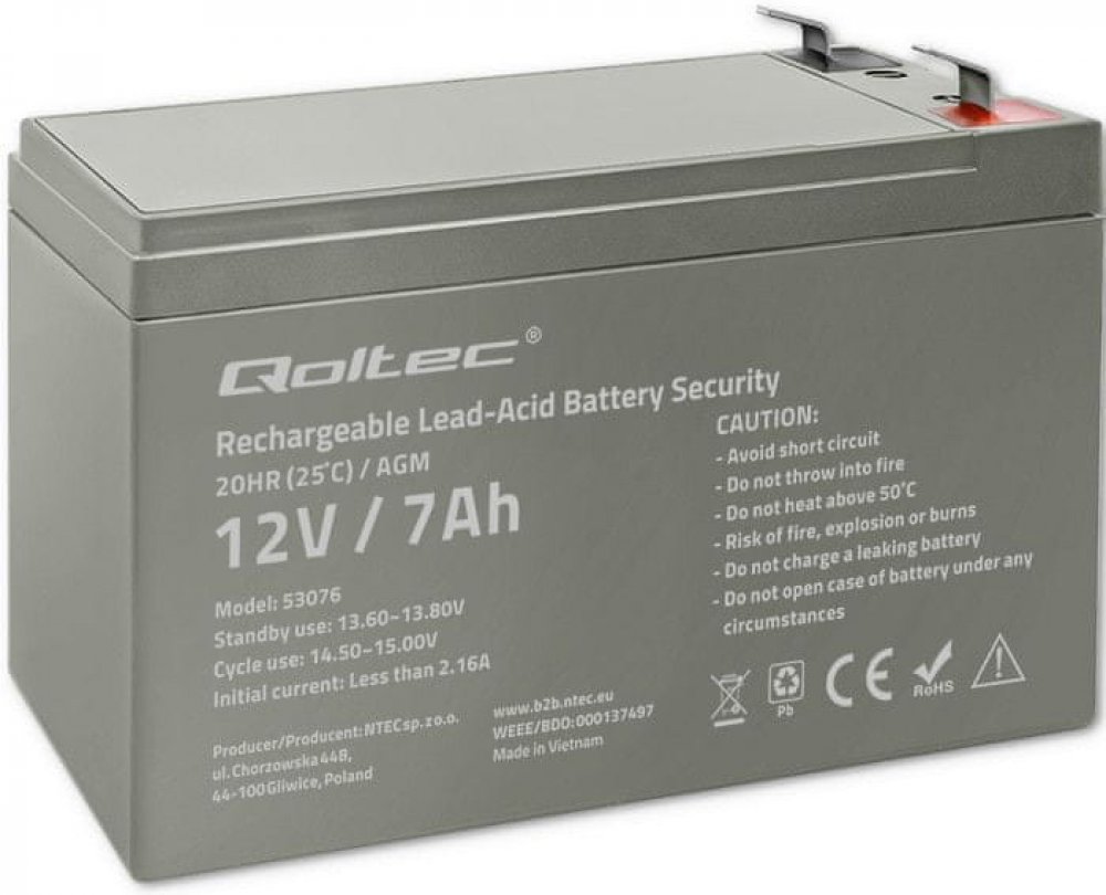 Váš stabilní zdroj energie pro každodenní i sváteční použitíPři každodenních činnostech nebo v práci určitě používáte zařízení, která ke svému efektivnímu fungování potřebují elektřinu. Některá z těchto zařízení odebírají energii z elektrické sítě a jsou vystavena výkyvům nebo nedostatku energie. Pro bezproblémový provoz je proto nezbytný nouzový zdroj napájení. Patří mezi ně:- poplašné a monitorovací systémy,- nouzové osvětlení,- zdravotnické přístroje,- váhy a pokladny.Jiné však mají spalovací motory a využívají pouze proud z baterií. Mezi ně patří:- čtyřkolky,- vysokozdvižné vozíky,- skútry,- lodě,- obytné automobily.Abychom jim zajistili stabilní a bezpečný zdroj energie, připravili jsme pro ně širokou nabídku řešení. Podívejte se na nabídku baterií Qoltec AGM a vyberte si variantu, která nejlépe vyhovuje vašim potřebám.Jedna baterie, dvě možnosti provozu. Zjistěte, která z nich je pro vás ta praváPřemýšlíte,kde se naše baterie nejlépe hodí? Je to jako trvalý zdroj energie, nebo jako nouzový zdroj pro zařízení běžně připojená k elektrické síti? Odpovíme vám upřímně: doporučujeme používat baterii AGM 7Ah v bufetovém provozu. Proč? Pro technologii AGM se doporučuje vyrovnávací provozPoužitá baterie bude fungovat velmi efektivně a bude se těšit dlouhé životnosti - až 10 let, jako nouzový zdroj energie ve vyrovnávacím provozu např. pro UPS, zabezpečovací systémy, nouzové osvětlení nebo spalovací vozidla.Co je to technologie AGM?"Technologie AGM (Absorbent Glass Mat), podle které jsou naše baterie konstruovány, znamená, že elektrolyt obsažený v baterii je absorbován speciálními rohožemi tvořenými vysoce porézními skelnými vlákny umístěnými mezi olověnými deskami pokrytými rohožemi. Toto řešení umožňuje delší životnost baterie díky pomalému vybíjení.Spolehlivost ze všech úhlů pohledu - bezpečnost vašich zařízení s baterií AGMPocit bezpečí Výhodou baterií AGM je bezesporu to, že jsou plně údržbové a spolehlivost je zachována po dlouhou dobu. To je umožněno konstrukcí, která se vyznačuje:- těsností pouzdra,- odolností proti nárazům,- možností montáže v různých polohách.Zakoupením baterie AGM 7Ah získáteplnou záruku spolehlivosti. Chcete, aby vaše zařízení pracovalo na plný výkon bez omezení? Nyní si můžete být jisti, že bude dostávat energii, kterou potřebuje ke svému fungování, bez kompromisů.Dlouhá životnost baterie - užívejte si energii mnohem déle!Jednoznačným plusem našich baterií je jejich bezúdržbová životnost, díky které vydrží až 10 let!To je možné díky použití těch nejkvalitnějších komponent, včetně čistého (nerecyklovaného) olovnatého. Neobsahuje žádné nečistoty, které by mohly snížit kapacitu baterie. Plášť byl naopak navržen z vysoce kvalitního plastu s cílem maximalizovat životnost díky ochraně vnitřku baterie.Péčujte o svou baterii a bude vám sloužit mnoho letPamatujte, že správné používání a řádná péče o baterii AGM je pro její životnost velmi důležitá. Časté a hluboké vybíjení rozhodně nebude mít pozitivní vliv na její výkon. Abyste se mohli těšit z dlouhé životnosti baterie, snažte se:- vyhnout se hlubokému vybíjení,- dbát na správný způsob nabíjení - nenabíjejte baterii příliš vysokým proudem,- vyhněte se velmi nízkým teplotám a dlouhodobému vystavení vysokým teplotám- používejte nabíječku vhodnou pro daný typ baterie.Jak správně nabíjet akumulátor agm, aby měl co nejdelší životnost?Akumulátory agm vyžadují nabíjení tzv. metodou konstantního napětí, nejprve konstantním proudem a poté při konstantním napětí. Nabízíme inteligentní nabíječky, které jsou pro tento typ baterií ideální. Vyhnete se tak riziku jejího poškození nevhodným nabíjením.