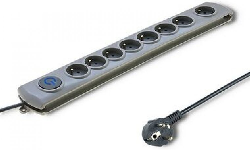 Efektivní ochrana a propojení pro vaše zařízení. Šedá přepěťová ochrana Quick Switch s 8 zásuvkami a podsvíceným vypínačem vám umožní připojit více zařízení a zaručí jejich bezpečnost.