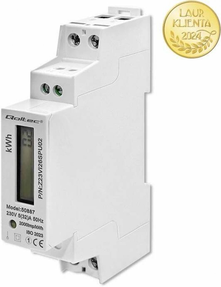 Investice do úspory energie a kontrolyElektronický měřič spotřeby proudu umožňuje v reálném čase sledovat úroveň spotřeby elektrické energie u jednofázových spotřebičů napájených střídavým napětím 230 V při frekvenci 50 Hz. Přístroj je vybaven indikátorem LED, který ukazuje spotřebu energie, LED bliká s frekvencí závislou na spotřebované energii s impulsní konstantou 2000imp/kWh. LCD displej, zobrazuje hodnotu spotřebované energie přepočtenou na základě počtu impulsů. Měřič je určen pro montáž do rozváděčů na lištu DIN TH35. Další výhodou výrobku je jeho velmi snadná obsluha a malé rozměry, které jistě usnadní instalaci přístroje. Pohodlné a přesné monitorováníMěřič spotřeby energie Qoltec můžete použít jak v domácích instalacích, tak v průmyslových závodech a jakýchkoli jiných zařízeních.Vlastnosti výrobku: Přístroj je vybaven systémem pro měření spotřeby elektrické energie, který umožňuje měření spotřeby elektrické energie:- Jednofázový, jednopólový,- Jednosměrný, počítá energii bez ohledu na směr proudění,- Standardní montáž přístroje v rozváděči na liště DIN 35 mm,- Měření spotřeby energie se zobrazuje v kWh,- Má LCD displej, pro sledování měření,- Přímé měření je 5(32)A,- Vyhovuje IEC 62053-21 a DIN EN50022,- Třída přesnosti 1.0,- Základní proud je 5 A,maximální proud je 32 A.