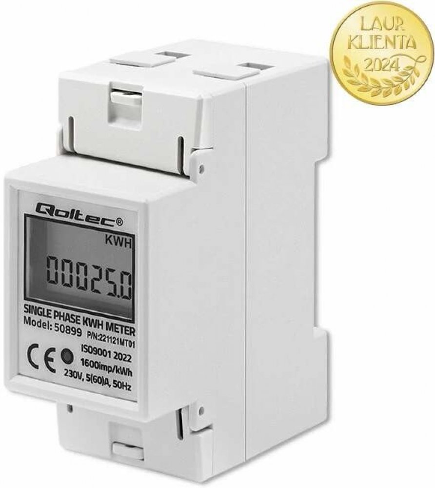 Investujte do úspory a kontroly spotřeby energieElektronický měřič spotřeby proudu umožňuje v reálném čase sledovat úroveň spotřeby elektrické energie u jednofázových spotřebičů napájených střídavým napětím 230 V při 50 Hz. Přístroj má indikátor LED, který ukazuje spotřebu energie, LED bliká s frekvencí závislou na spotřebované energii s pulzní konstantou 1600imp/kWh. Displej LCD, zobrazuje hodnotu spotřebované energie přepočtenou na základě počtu impulsů. Měřič je určen pro montáž do rozváděčů na lištu DIN TH35. Další výhodou výrobku je jeho velmi snadná obsluha a malé rozměry, které jistě usnadní instalaci přístroje. Pohodlné a přesné monitorování Měřič spotřeby energie Qoltec můžete použít jak v domácích instalacích, tak v průmyslových závodech a jakýchkoli jiných zařízeních.Vlastnosti výrobku :- Jednofázový, dvouvodičový, 2 moduly,- Jednosměrný, počítá energii bez ohledu na směr proudění,- Standardní montáž přístroje v rozvaděči na lištu DIN 35 mm,- Měření spotřeby energie se zobrazuje v kWh,- Má 5+1 LCD displej, pro sledování měření,- Přímé měření je 5(60)A,- Splňuje požadavky IEC 62053-21 a DIN EN50022,- Třída přesnosti 1.0,- Základní proud je 5 A, maximální proud má hodnotu 60 A.
