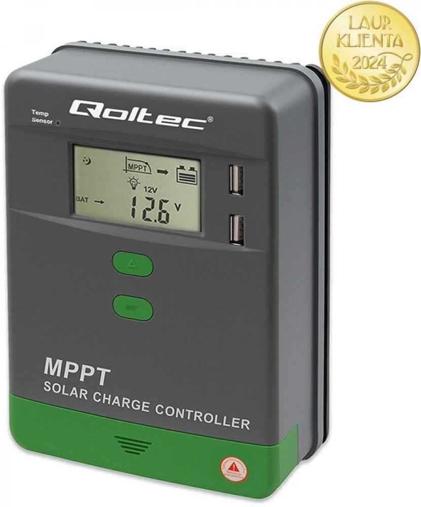 Qoltec 53663 solární regulátor nabíjení Qoltec MPPT s teplotním senzorem 40A 12V 24V