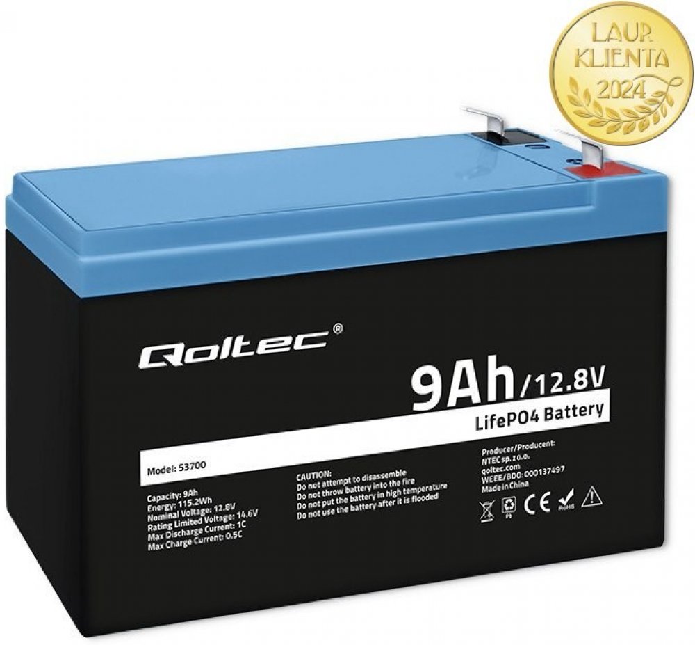 Qoltec 53700 LiFePO4 12,8 V 9 Ah 115,2 Wh BMS