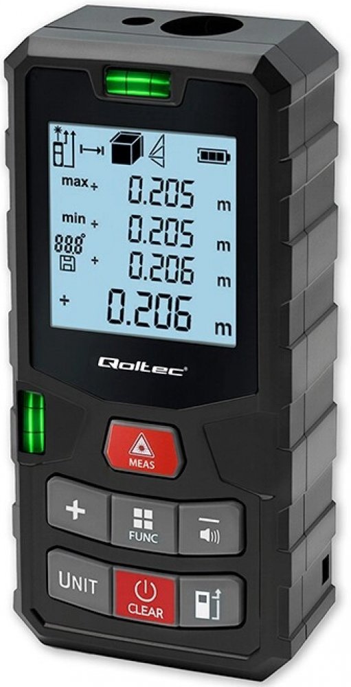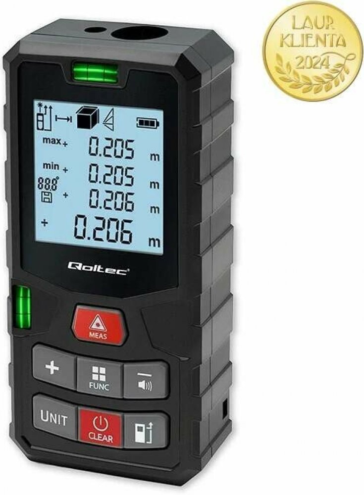 Laserový měřič vzdálenosti je ideální pro profesionály i domácí kutily. Díky dosahu až 120 m a přesnosti ±2 mm provádí rychlé a konzistentní měření i v těžko přístupných místech. Podsvícený LCD displej zajišťuje výbornou čitelnost v interiéru i horších světelných podmínkách, integrované libely pomáhají s přesným zarovnáním.Zařízení podporuje širokou škálu funkcí: jednorázové měření, kontinuální měření s min/max, výpočet plochy a objemu, i Pythagorovy režimy (1/2/3) pro nepřímé stanovení výšek a vzdáleností, když přímé měření není možné. Automatické vypnutí po 180 s šetří energii a odolná konstrukce z ABS chrání přístroj při každodenním používání.Využití:Rekonstrukce a interiéry: rychlé zjištění rozměrů pro barvy, podlahy či obklady.Stavba a konstrukce: měření výšek a vzdáleností i u stropů a schodišť.Architektura interiérů: výpočet plochy a kubatury pro plánování nábytku, osvětlení a HVAC.Logistika a sklady: rychlé objemové výpočty pro efektivní využití prostoru.Instalace: přesné osazení dveří, oken, zábradlí i elektro a vodoinstalací.Tipy pro přesnost: stabilně opřete přístroj, vyhýbejte se ostrému slunci, měřte na matné povrchy, využívejte paměť měření a skladujte v suchu mimo extrémy teplot.SpecifikaceTyp zařízeníDigitální laserový dálkoměr s libelouDosah měření0,05–120 m (dostupné varianty 50/70/100/120 m)Přesnost měření±2 mmDisplejPodsvícený LCDMěřicí režimyJednorázové, kontinuální (min/max), plocha, objem, Pythagoras 1/2/3Automatické vypnutíPo 180 s nečinnostiŽivotnost na bateriiAž 5000 měřeníOvládáníJednoduché ovládání jedním tlačítkem MEAS, funkční klávesyKonstrukceOdolné tělo z ABS, protiskluzové prvkyPomůcky pro zarovnáníVestavěné libelyJednotkym (další dle nastavení zařízení)Vhodné použitíStavebnictví, interiéry, instalace, logistika, sklady