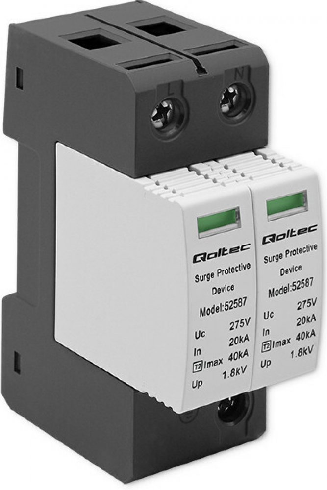 ✅Qoltec Omezovač přepětí AC | 2P | 275 V | T2 | C