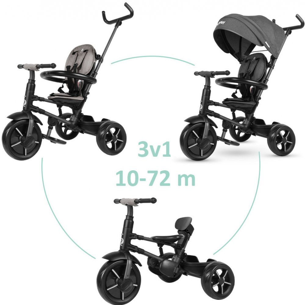 - Tříkolka, která se přizpůsobuje vývoji dítěte od 10 do 72 měsíců