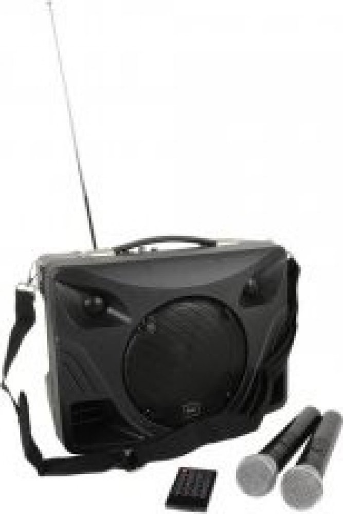 Stolní řečnický 8“ systém s dobíjecí baterií, MP3 přehrávačem, Bluetooth přijímačem a dvojicí ručních bezdrátových VHF mikrofonů. Výkon systému 50W, kompaktní provedení, ramenní popruh a madlo pro snadnou manipulaci, integrované držáky pro mikrofony. Ovládací panel MP3 přehrávače s informačním displejem, slotem pro SD karty a USB portem. Dvojice mikrofonních vstupů (Jack 6,3 mm) a linkový vstup a ...
