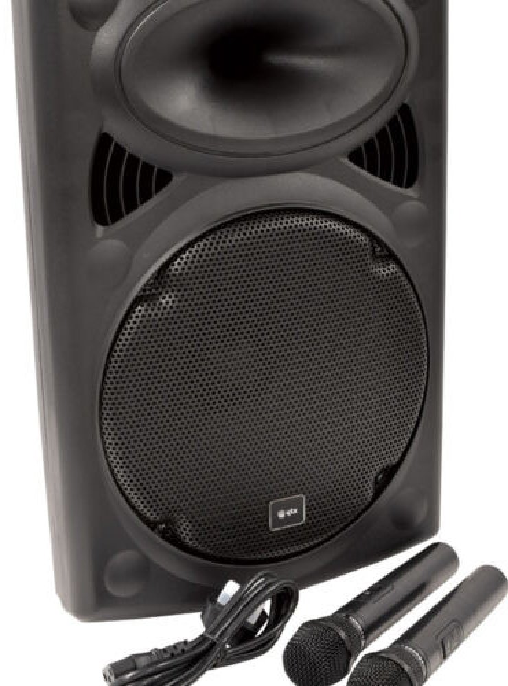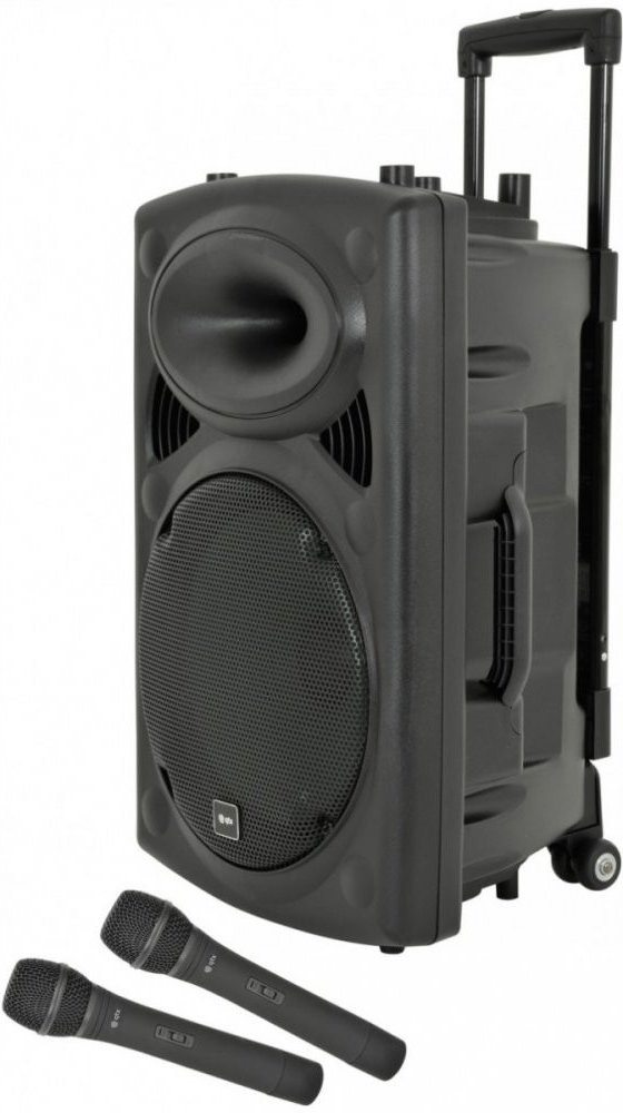 Mobilní zvukový systém s MP3 přehrávačem, Bluetooth přijímačem a VHF ručními mikrofony. Zabudovaná dobíjecí baterie, zesilovač a základní mixážní a ovládací pult. Součástí dodávky jsou dva ruční bezdrátové VHF mikrofony. Dvojice mikrofonních vstupů Jack 6,3 mm, linkový Aux vstup a výstup RCA, oddělení ovládání úrovně signálu všech kanálů, 2-pásmové korekce zvuku. Multimediální přehrávač s LED disp...