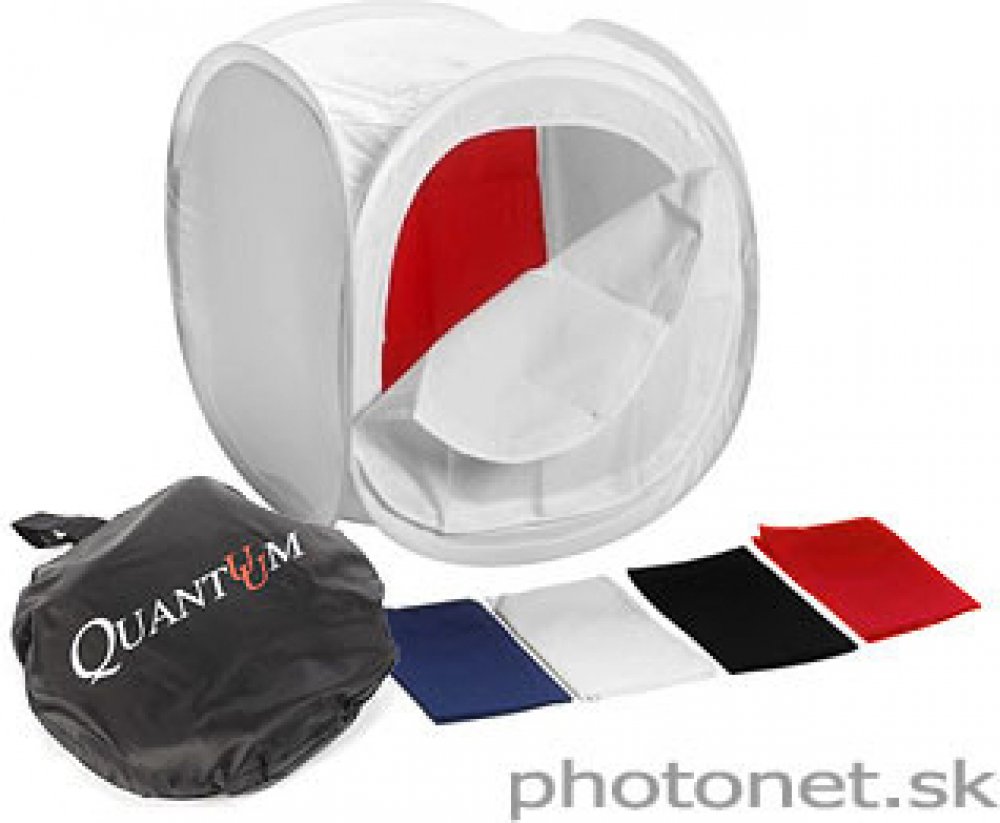 Světelný fotostan Quantuum ve tvaru kostky.Nezbytná pomůcka pro dosažení rozptýleného světla v produktové fotografii.Rozměry: 120cm x 120cm x 120cmVe složeném stavu má průměr 50cm.Balení obsahuje:fotostan 4 ks pozadí (bílé, černé, modré, červené) přední závěs s otvorem na objektiv pouzdro