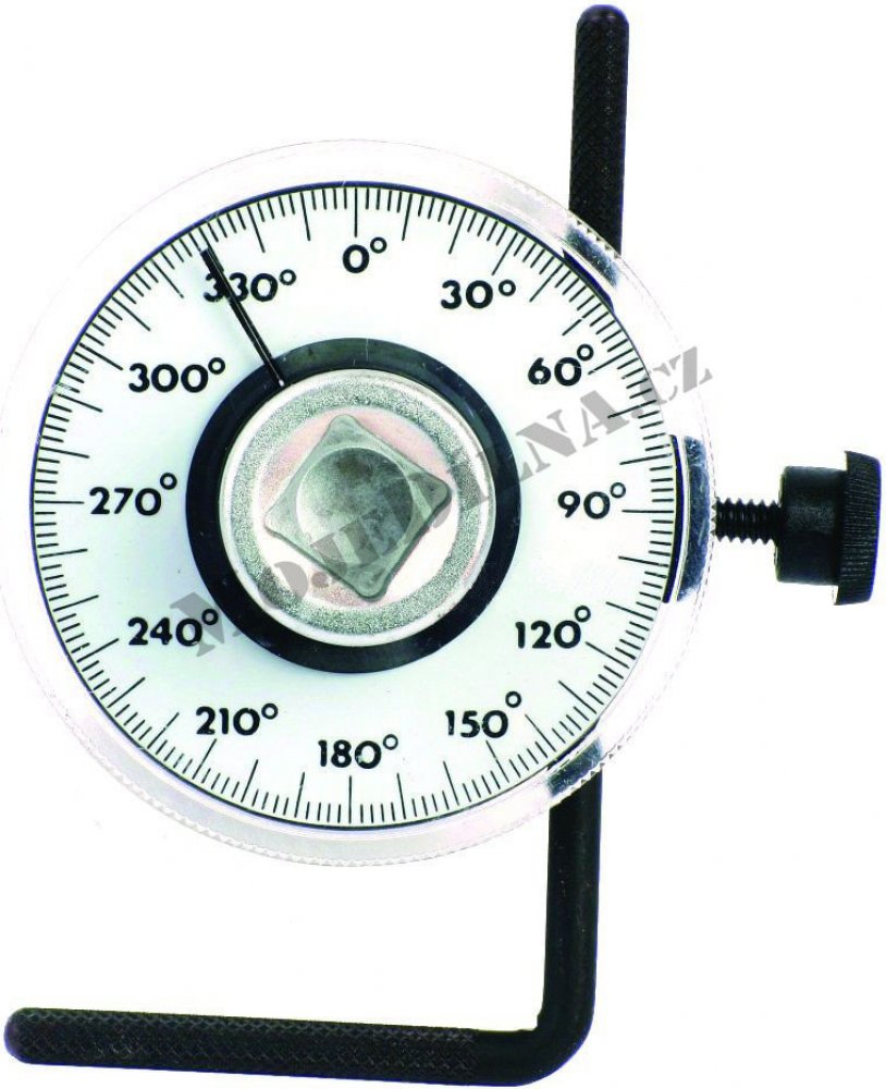 Úhloměr pro momentový klíč 1/2“, analogový, s nastavitelným snímačem a kruhovou stupnicí 0-360 ° – QUATROS QS30369Speciální přípravek určený pro utahování šroubových spojů, kdy není předepsán utahovací moment, ale úhel dotažení.Dobře čitelná kruhová stupnice (černá čísla na bílém podkladě) je dělená po 2 ° v intervalech 10 ° a 30 °. Snadné nastavení výchozí polohy 0 ° a její fixace.