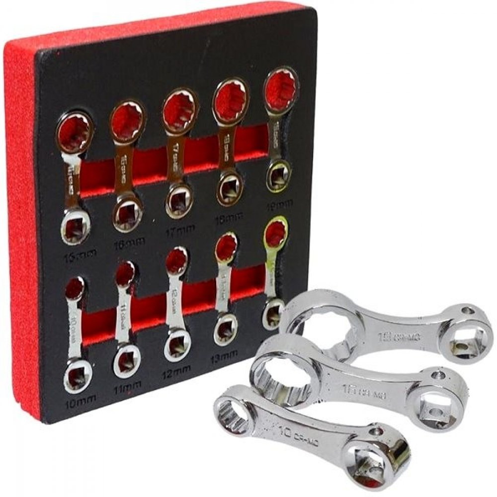 Dvanáctihranné očkové adaptéry pro momentové klíče s vodícím čtyřhranem 3/8“, rozsah 10-19 mm, sada 10 ks – QUATROS QS56000