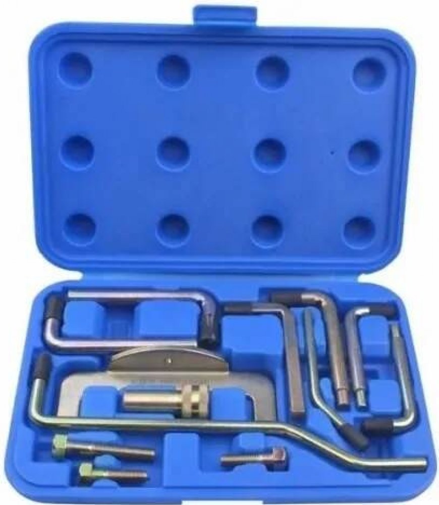 Sada kovových kolíků, šroubů a destičky/výlisku pro zajištění pohyblivých částí motoru (kladka, ozubené kolo, vačková hřídel apod.) použijete při výměně rozvodového řemene, vodní pumpy a dalších servisních pracích.