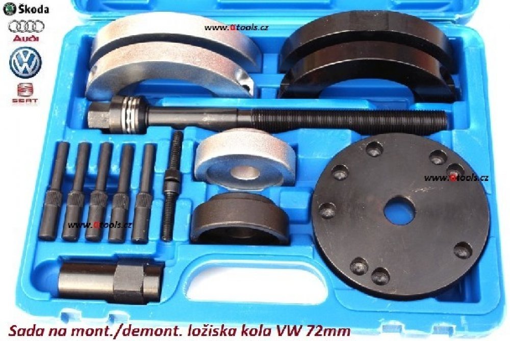 Sada slouží ke snadné montáži a demontáži ložisek předního kola (náboje) 72 mm na vozidlech Volkswagen, Škoda, Audi a Seat.