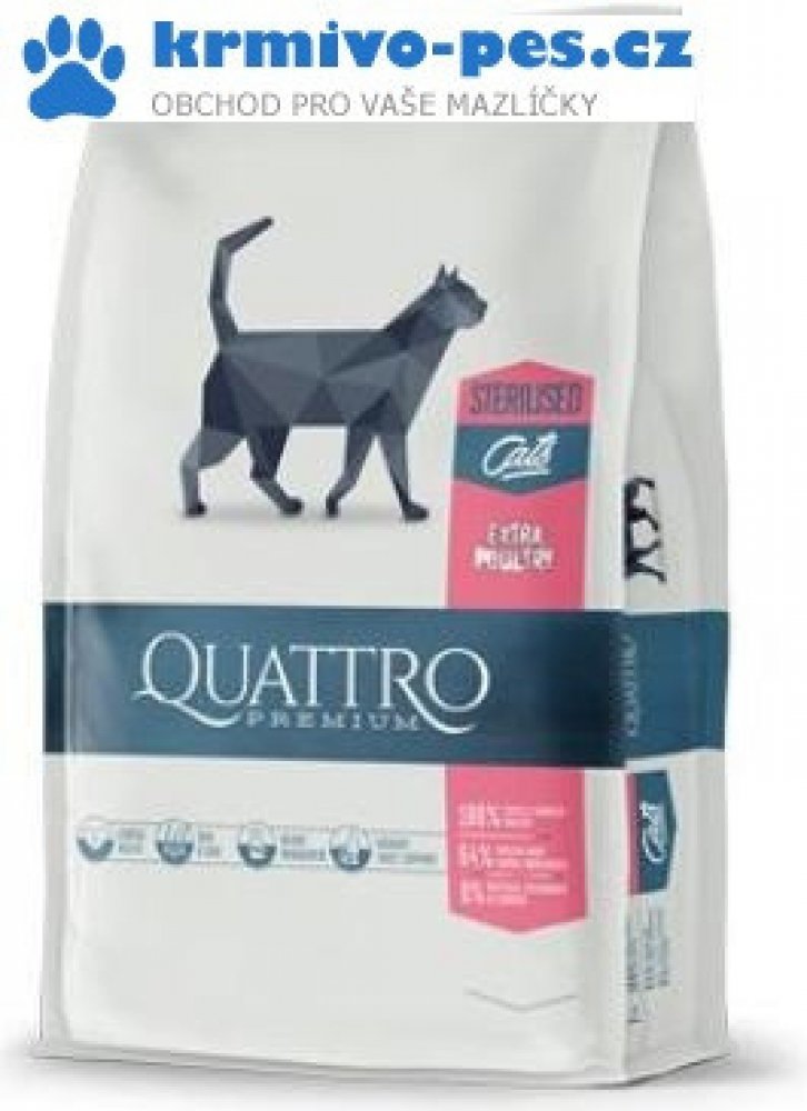 QUATTRO Cat Dry Premium all Breed Steril. Drůbež 1,5kg - Kompletní krmivo s drůbežím masem EXTRA, pro dospělé sterilizované kočky. Od 1 roku.