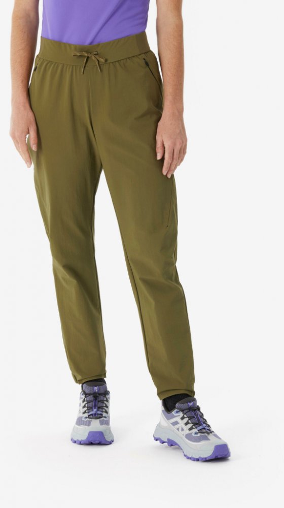 Turistické kalhoty, které díky 15% podílu elastanu a tvarovaným kolenům neomezují v pohybu. Můžete v nich šplhat, rozkročit se, dřepnout si: nic vás nezastaví. Stylově i na výletě! Tyto turistické kalhoty přiléhavého střihu jsou vyrobeny z prodyšného syntetického materiálu. Pružný pas a konce nohavic se přizpůsobí vaší postavě. Kalhoty mají střih slim, který lichotí postavě, aniž by omezoval v pohybu. Guma v pase obepne váš pas a gumičky na kotnících umožňují přesné nastavení.|Šplhejte, sestupujte, rozkročte se: tyto kalhoty budou váš pohyb následovat. Tkanina s 15 % elastanu kopíruje každý váš pohyb. Tvarovaná kolena vám poskytnou ještě větší volnost.|Co může být při turistice nepříjemnějšího než pocit propoceného oblečení? Tyto kalhoty jsou vyrobeny z materiálu, který vás nezklame. Je lehký, syntetický, a tak velmi rychle odvádí pot. Na túrách v něm budete vždy v suchu.|Péče o kalhoty je velmi jednoduchá. Otočte kalhoty naruby, zapněte zipy a vyperte je na 30 °C. Prodyšný materiál uschne během chvilky. Žehlení není potřeba. Kalhoty jsou za chvilku zas připravené na vaše horská dobrodružství.
