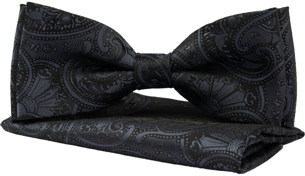 Pánský motýlek Quentino – černý s jemným paisley vzorem, včetně kapesníčku