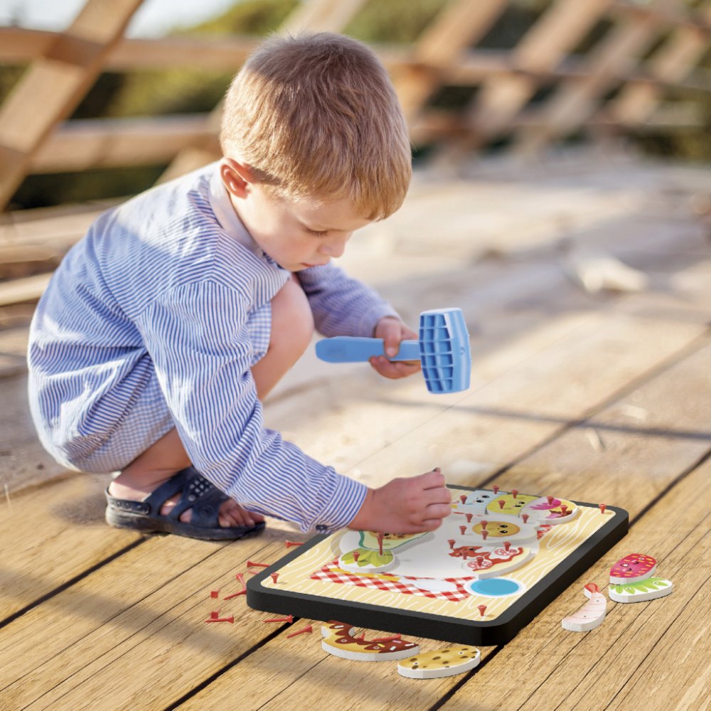 Kreativní hraní s inovativními materiály a exkluzivním designem – to je variace na klasickou hru s kladívkem a kolíčky. Dítě může libovolně přibíjet figurky na podložku a vytvářet nekonečné množství fantastických příběhů. Rozvíjené dovednosti: jemná motorika, kognitivní rozvoj, prostorové vnímání, kreativní myšlení. Určeno pro děti od 4 let.