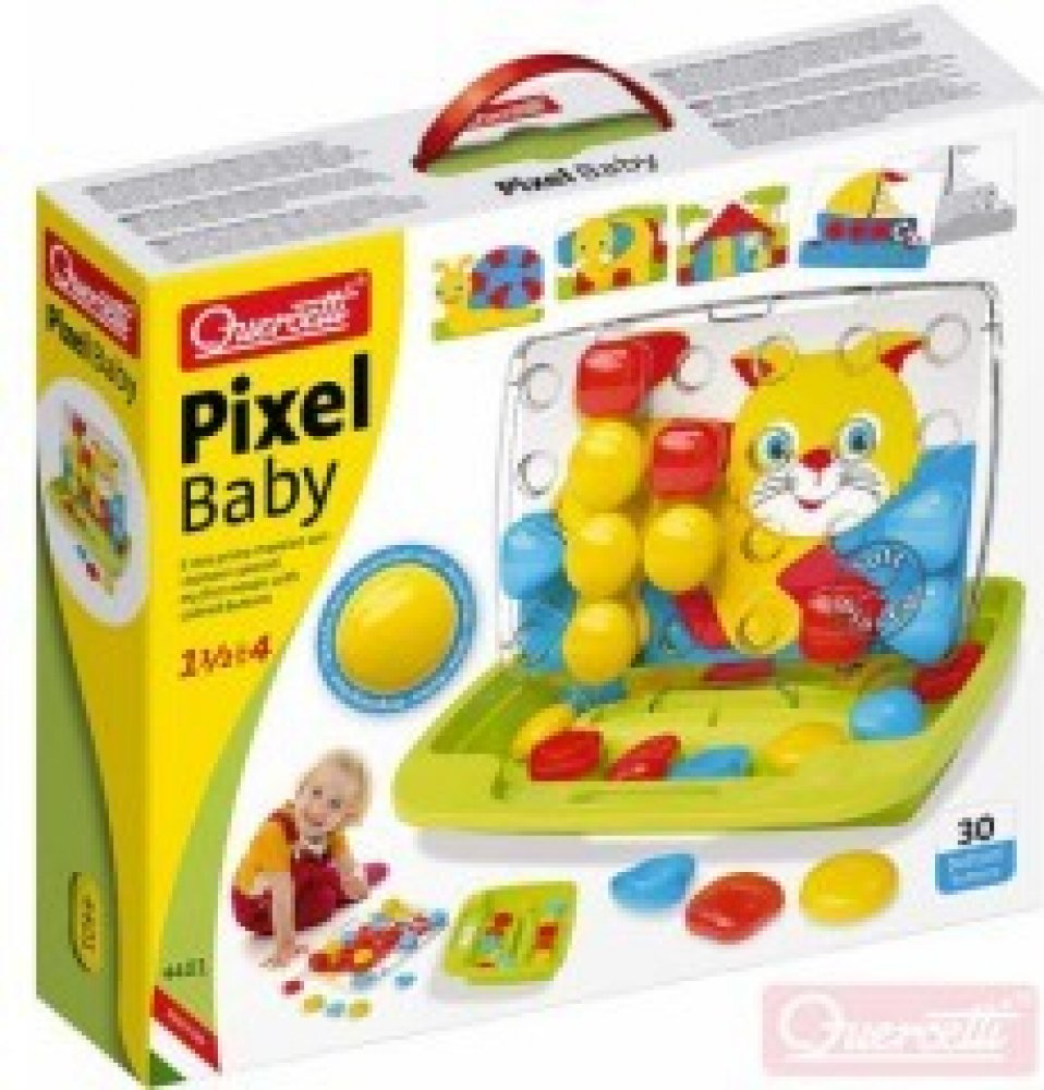 ♥ Quercetti Pixel Baby Plug-in Mosaic Cat ♥Vlastnosti produktu:- Vnější povrchová úprava, která je součástí balení:✔️stimuliert rozpoznávání barev✔️ rozvíjí manuální dovednosti a motorickou koordinaci Mozaika umožňuje skvělou a kreativní zábavu při vytváření mozaiky vkládáním kolíčků do děrované destičky podle navrženého vzoru nebo vlastní fantazie. Hračka stimuluje rozpoznávání barev, podporuje m...