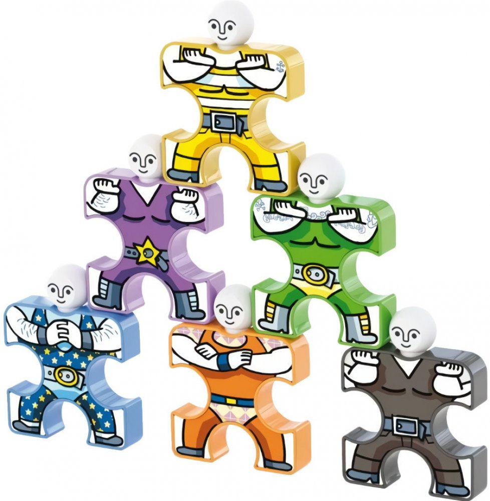 Ukládejte akrobaty tak, abyste výslednou stavbu neshodili právě Vy, ale Váš protihráč! Spolu s cirkusovými akrobaty ve tvaru „X“ v balení naleznete měkké vložky, které lze do jednotlivých dílků vložit a tím každého akrobata odlišit od ostatních. Tyto měkké vložky jsou vzájemně zaměnitelné a mohou být umístěny do kteréhokoliv tvaru. S akrobaty si můžete také vytvořit lidské pyramidy nebo různé hádanky. Mají velikost padnoucí přesně do malých ručiček a umožňují hodiny a hodiny kreativní zábavy. Hlavní vlastnosti: 16 hracích figurekrozvíjí motorikupro děti od 3 letvyrobeno v I tálii