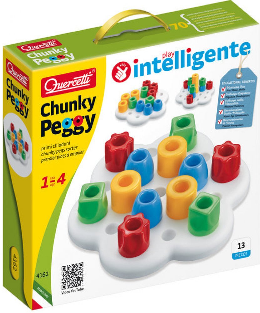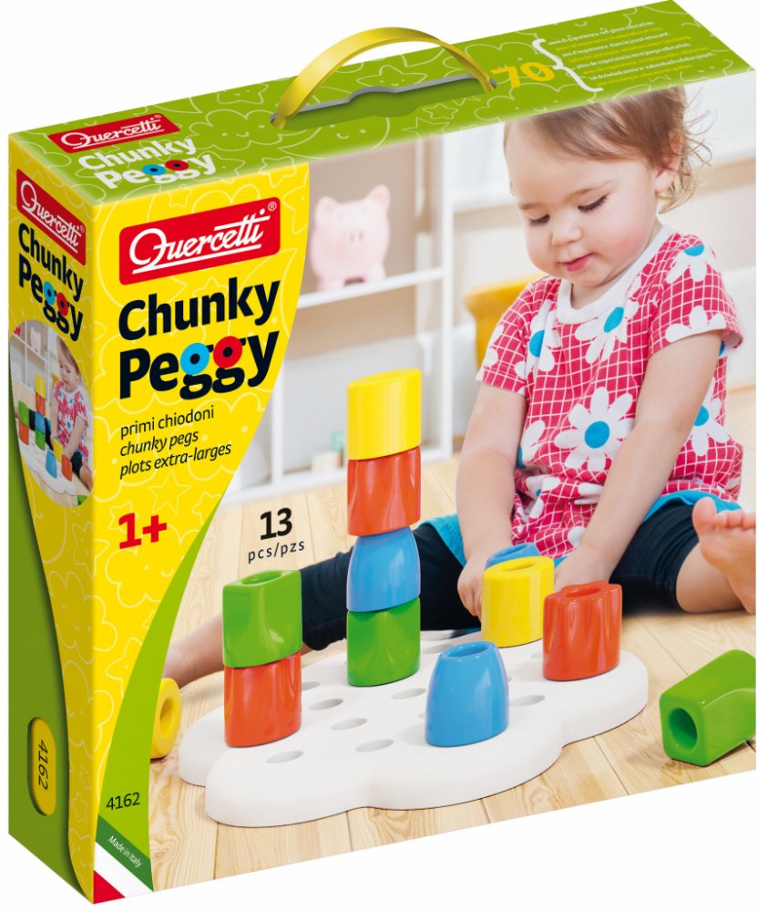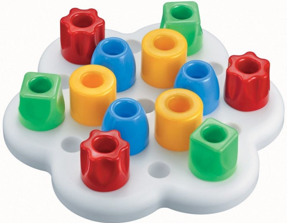 Elasticky pružná, plastická, nerozbitná hrací deska s 12 otvory a s 12 velkými kolíky v pastelových barvách je skvělou stavebnicí pro ty nejmenší děti. Stavebnice patří mezi aktivní, tvořivé, kreativní, chytré a naučné stavebnice, sady a hračky pro batolata.