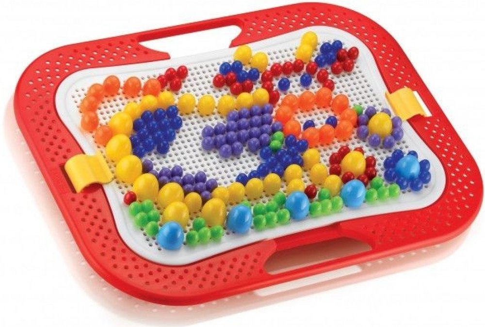 Pomocí těchto kolíčků, které se zasazují do otvorů v hrací desce, tvoří dětí různé obrázky nebo vzory.