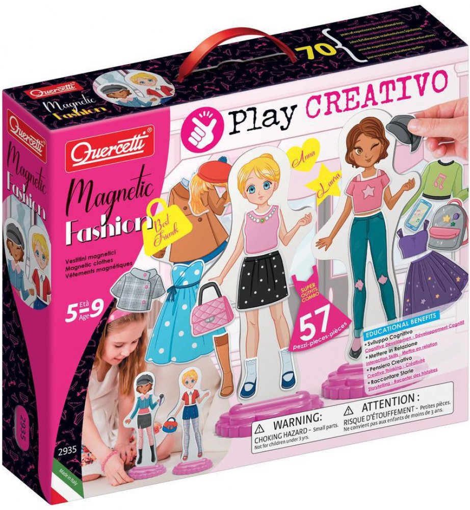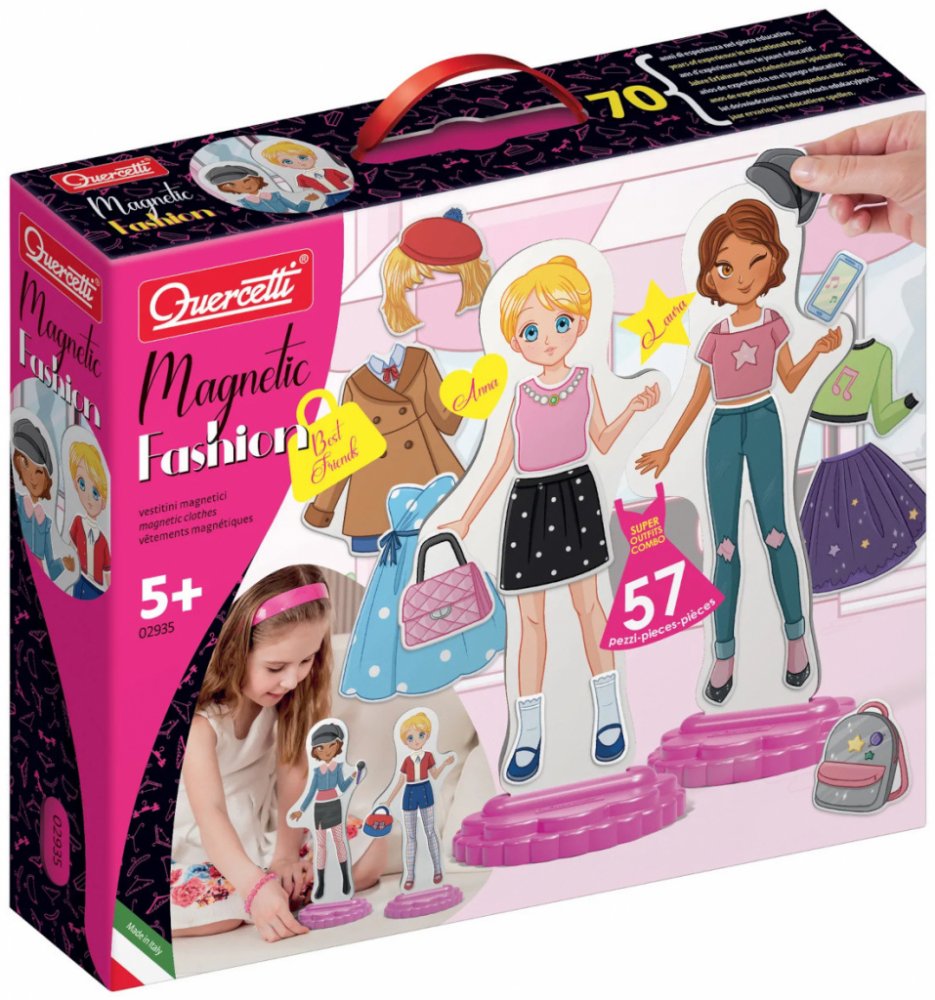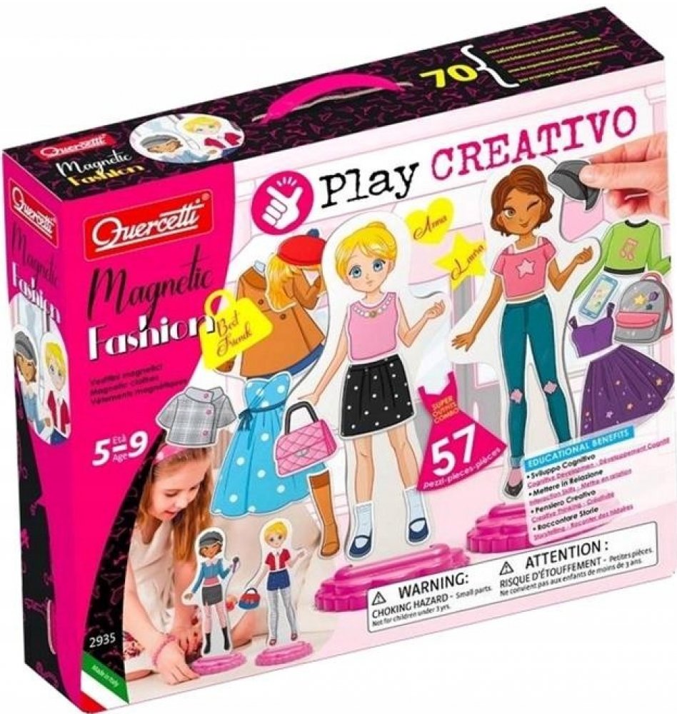 Video je pouze ilustrační, zobrazuje příbuzný produkt. Vytvořte si díky naší úžasné stavebnici svou vlastní kuličkovou dráhu! Tato sada umožňuje sestavit mnohotvárné dráhy obohacené sběrnými koši, spirálami, můstky, mlýnky a zásobníky s pružinou, jež jsou umístěny vždy na začátku a konci dráhy a zajištují plynulé spouštění kuliček. Kuličkové dráhy patří mezi vzdělávací hračky, které děti učí základům fyzikálních zákonů gravitace a mechaniky. Stavebnice jsou vzájemně plně kompatibilní a zaručují zábavu na dlouhou dobu. Hračka rozvíjí tvořivost, učí základům fyzikálních zákonů gravitace a mechaniky a je určena pro děti od 4 let. Hlavní vlastnosti: rozvíjí jemnou motoriku, tvořivost, fantazii a logicko-kombinační myšleníbalení obsahuje 45 dílkůpro děti od 4 let Vydání nového produktu a spousta nových magnetických šatů, které lze kombinovat a vytvořit tak dokonalý outfit. Sada obsahuje dvě nejlepší kamarádky - Annu a Lauru - a spoustu oblečení. V balení je až 57 magnetických dílků, které lze vzájemně kombinovat a vytvářet tak oslnivé kreace. Všechny sady z řady "Magnetic Fashion" jsou kompatibilní a umožňují skvělou a mimořádně kreativní zábavu při vytváření výtvorů.Věk: 5-9 let EAN: 8007905029350 Hloubka: 70.000000 ISBN: 8007905029350 Typ: Hračky Šířka: 340 Vydavatel: Quercetti Výška: 290 Magnetická sada fashion (nejlepší přátelé). Dítě může na kartonové krabice aplikovat různé stylizace na dvě kartonové panenky. Nová verze výrobku má mnoho nových magnetických oblečků, které lze kombinovat a vytvořit tak dokonalé oblečení. Sada obsahuje dvě nejlepší kamarádky - Annu a Lauru a mnoho kostýmů. Krabice obsahuje až 57 magnetických prvků, které lze libovolně kombinovat a vytvářet tak oslnivé kreace. Rozměry balení: 34x7x29,5 cm Věk: 5-9 let Quercetti 2935 Quercetti-2935 Magnetic Fashion Best Friends Modespiel, vícebarevný Quercetti 02935 S Magnetic Fashion si užijete neodolatelnou zábavu při oblékání dvou nejlepších kamarádek na tisíc různých způsobů: najděte pro každého ten nejvhodnější vzhled podle jeho osobnosti. Vhodné pro děti od 5-9 let. Obsah balení: 2 magnetické převlékací panenky 2 stojánky na panenky 57 magnetických kusů oblečení Popis