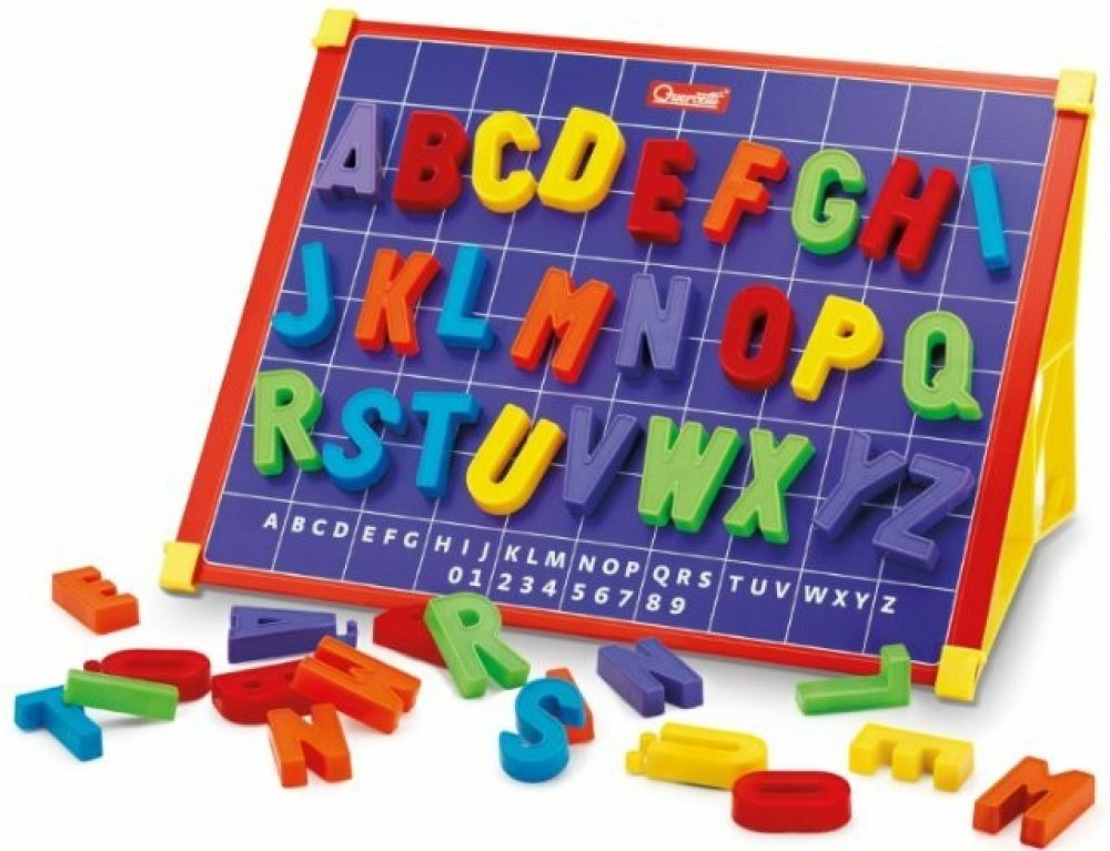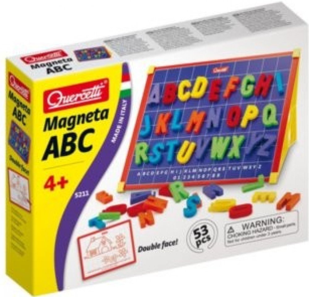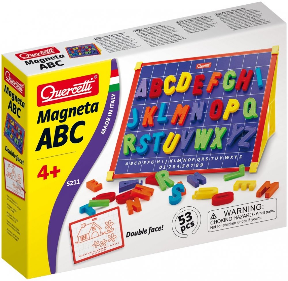 Souprava obsahuje 48 magnetických písmen velké abecedy, které společně s psacími potřebami po ukončení hry uložíte do 2 podlouhlých pouzder.