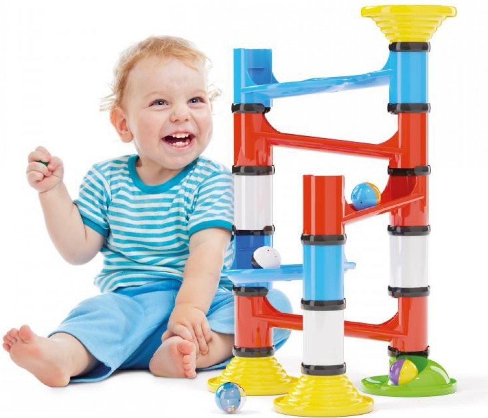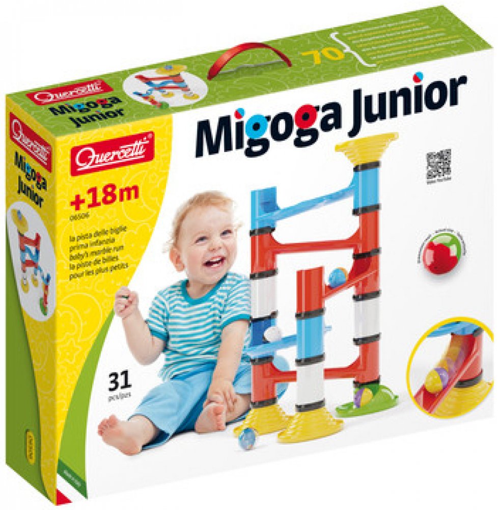 Quercetti 06506_PO Migoga Junior Intermediate, Díky stavebnici Migoga Junior si i menší děti mohou hrát s kuličkovou dráhou, která byla vytvořena speciálně pro ně. Všechny díly stavebnice jsou veliké a mají různé barvy, aby se daly od sebe snadno rozeznat. Spojení jsou snadná a intuitivní, což umožňuje rychle postavit různé dráhy. Kuličky mají průměr 4,5 cm a některé při pohybu chrastí. Jsou navrženy tak, aby se kutálely pomalu a prodlužovaly tak dětem chvíle jejich okouzlení a překvapení; díky tomu hra dětem přináší poučení i možnost objevovat. Stavebnice Migoga Junior zajišťuje dlouhé hodiny zábavy a zcela bezpečného hraní, protože vyhovuje všem bezpečnostním standardům a byly pro ni použity pouze materiály nejvyšší kvality. Hra se stavebnicí Migoga Junior podněcuje děti, aby při hledání nových řešení experimentovaly, se zájmem pozorovaly okolní svět a metodou pokusů a omylů ověřovaly nové nápady. Hračka je určena dětem od 1,5 roku.