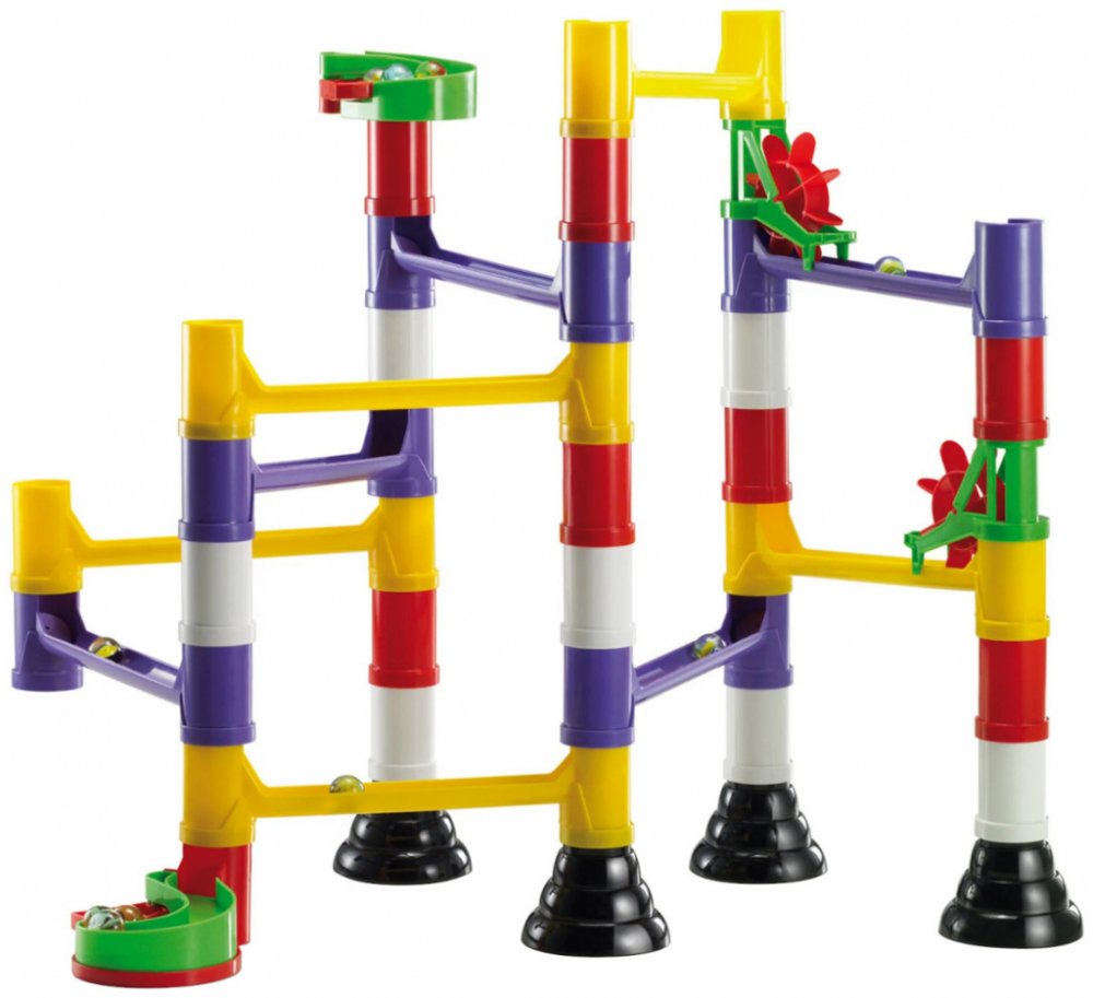 Barevné kuličkové dráhy umožňují sestavit mnohotvárné dráhy obohacené sběrnými koši, spirálami, můstky, mlýnky a zásobníky s pružinou, jež jsou umístěny vždy na začátku a konci dráhy a zajištují plynulé spouštění kuliček. Kuličkové dráhy patří mezi vzdělávací hračky, které děti učí základům fyzikálních zákonů gravitace a mechaniky. Stavebnice jsou vzájemně plně kompatibilní.