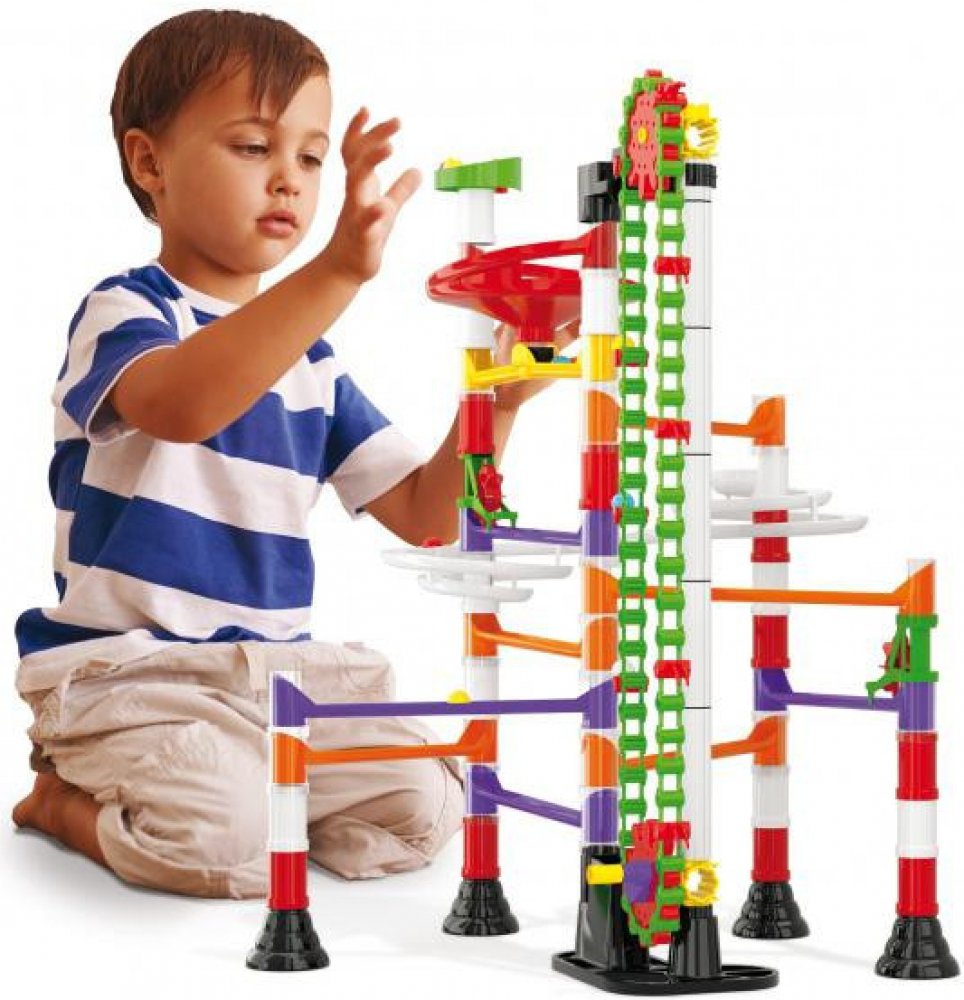 Vytvořte si díky naší úžasné stavebnici svou vlastní kuličkovou dráhu. Postavte si modely vyobrazené na krabici nebo si užijte experimenty s vlastními návrhy. Všechny vzájemně do sebe zapadající skluzavky, můstky, sloupky, lopatková kola, spirály a trychtýře vám nabízejí nekonečnou škálu kombinací a zaručují zábavu na dlouhou dobu. Hračka rozvíjí tvořivost a logické myšlení, jež jsou ke stavbě krá...