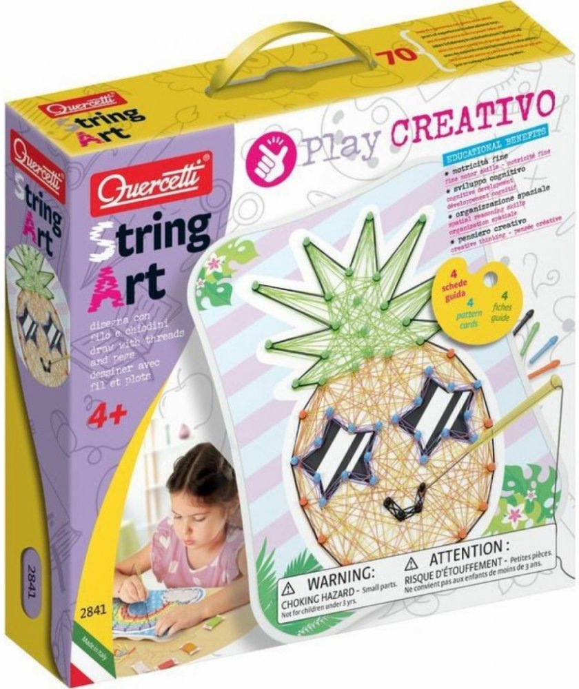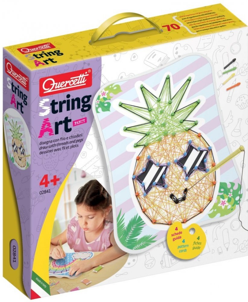 Podrobnosti o produktu: Věk: od 4 let Fancy Se sadou String Art Kawaii od Quercetti je vytváření roztomilých vzorů pomocí barevných špendlíků a vyšívacích nití bezpečné pro děti snadné a zábavné. Zasuňte špendlíky do otvorů v přiložených kartičkách a pak pomocí tyčinky mezi dvěma špendlíky protáhněte nit a vytvořte super roztomilé barevné motivy. Fancy String Art Kawaii nabízí zcela nový a fascinu...