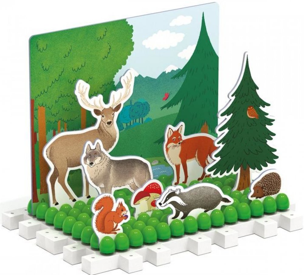 spoustou zvířátek. Obrázky pozadí i figurky zvířátek jsou vyrobeny z