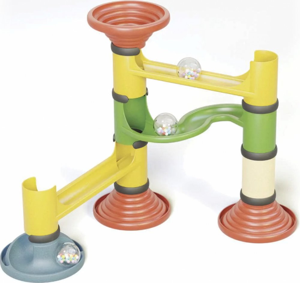 Díky stavebnici Migoga Junior si i menší děti mohou hrát s kuličkovou dráhou, která byla vytvořena speciálně pro ně. Všechny díly stavebnice jsou veliké a mají různé barvy, aby se daly od sebe snadno rozeznat. Spojení jsou snadná a intuitivní, což umožňuje rychle postavit různé dráhy. Vyrobeno z udržitelných a 100% recyklovatelných materiálů v sérii PlayBio. Vhodné pro děti od 18 měsíců. BIO PLAST...