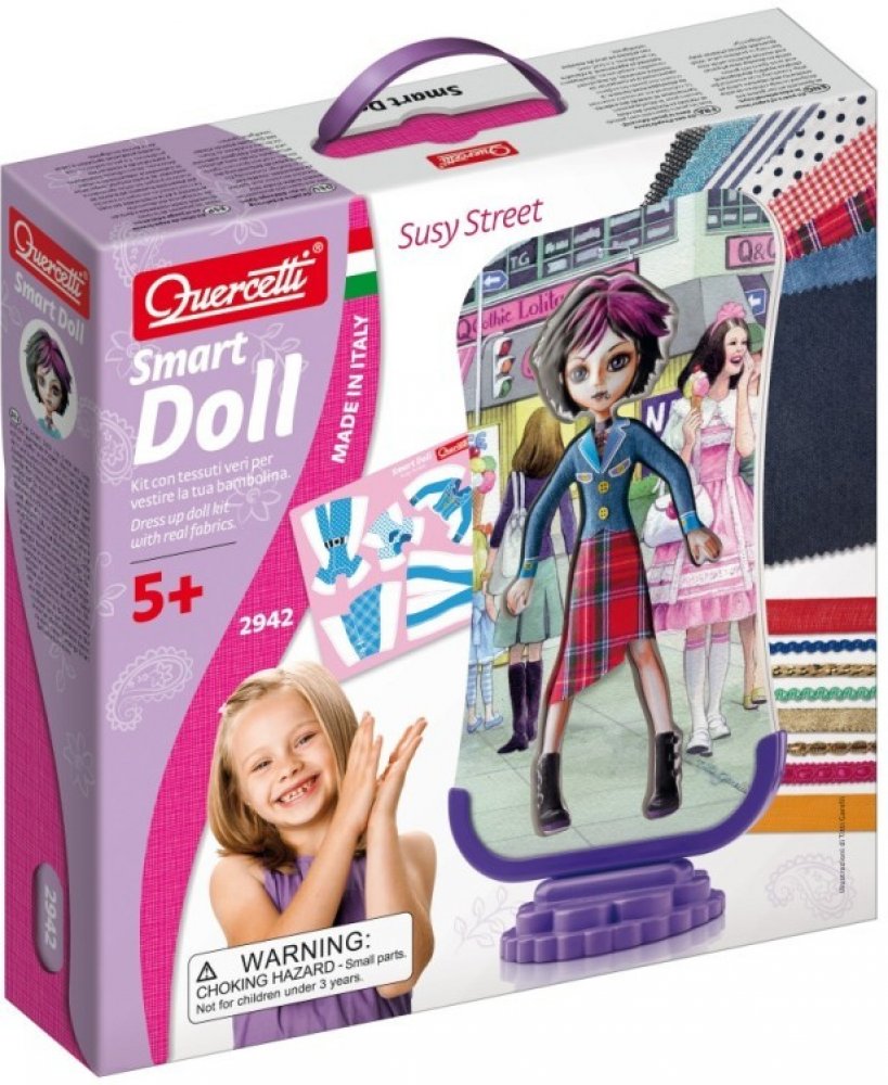 SMART DOLLS jsou 3rozměrné oblékací a převlékací panenky jako živé pro děti OD 5 LET ! Panenky modelky SUSY, LILY a GRETU mohou děvčátka OBLÉKAT S POMOCÍ KOUSKŮ OPRAVDOVÝCH LÁTEK a zdobit je barevnými stužkami a samolepkami ! Souprava obsahuje 8 ks látky 10x15 cm, 1 ks látky 15x30 cm, saténové samolepky, stužky a papírové vzory ! Vyberte si své oblíbené oblečení a svou oblíbenou panenku snadno oblečte následovně : na trojrozměrnou panenku položte vybrané kusy látky, přiklopte víko s obrysem panenky A JE TO ! Oblékací a převlékací panenka modelka s oblečky SUSY STREET Smart Doll rozvíjí dětskou motoriku, tvořivost, hravost fantazii a vkus a patří mezi aktivní, tvořivé, kreativní, chytré a naučné sady a hračky. Oblékací a převlékací panenka modelka s oblečky SUSY STREET Smart Doll je výrobkem QUERCETTI ze zdraví zcela neškodných materiálů špičkové kvality a nese známku MADE IN ITALY ! Oblékací a převlékací panenka modelka s oblečky SUSY STREET Smart Doll je vhodná pro děti, tj. pro holky, děvčátka, děvčata + dívky od 5 let !