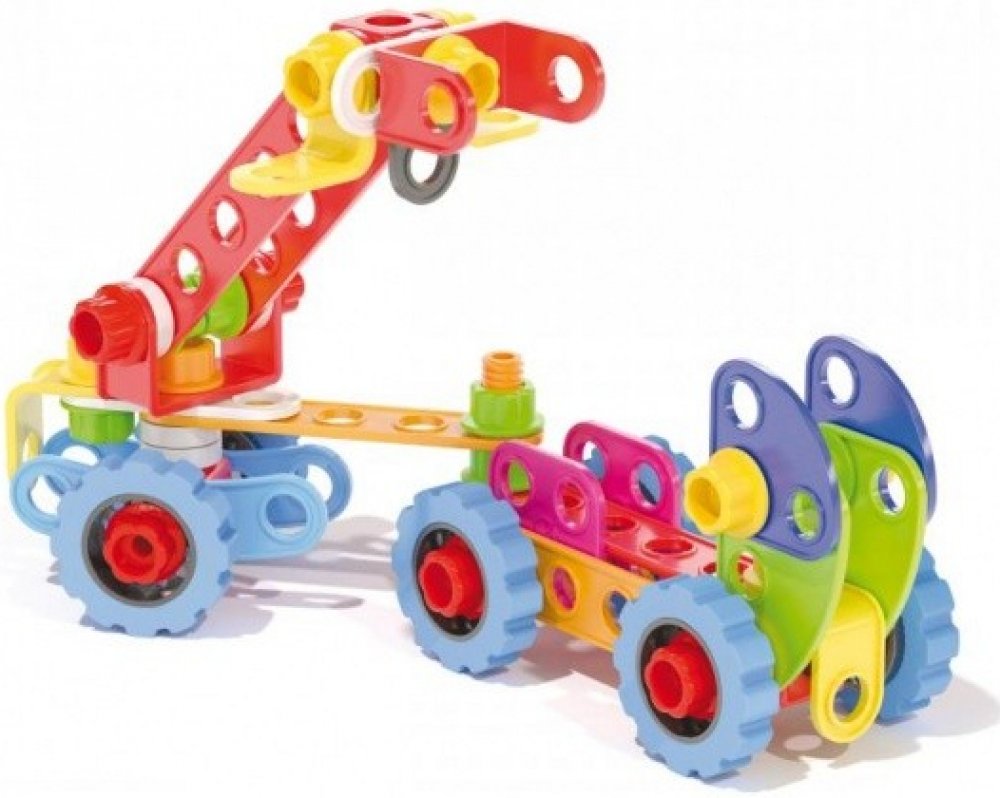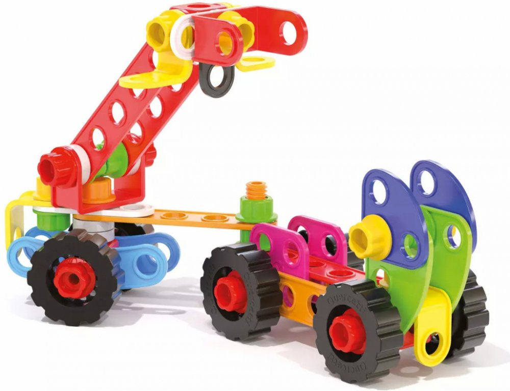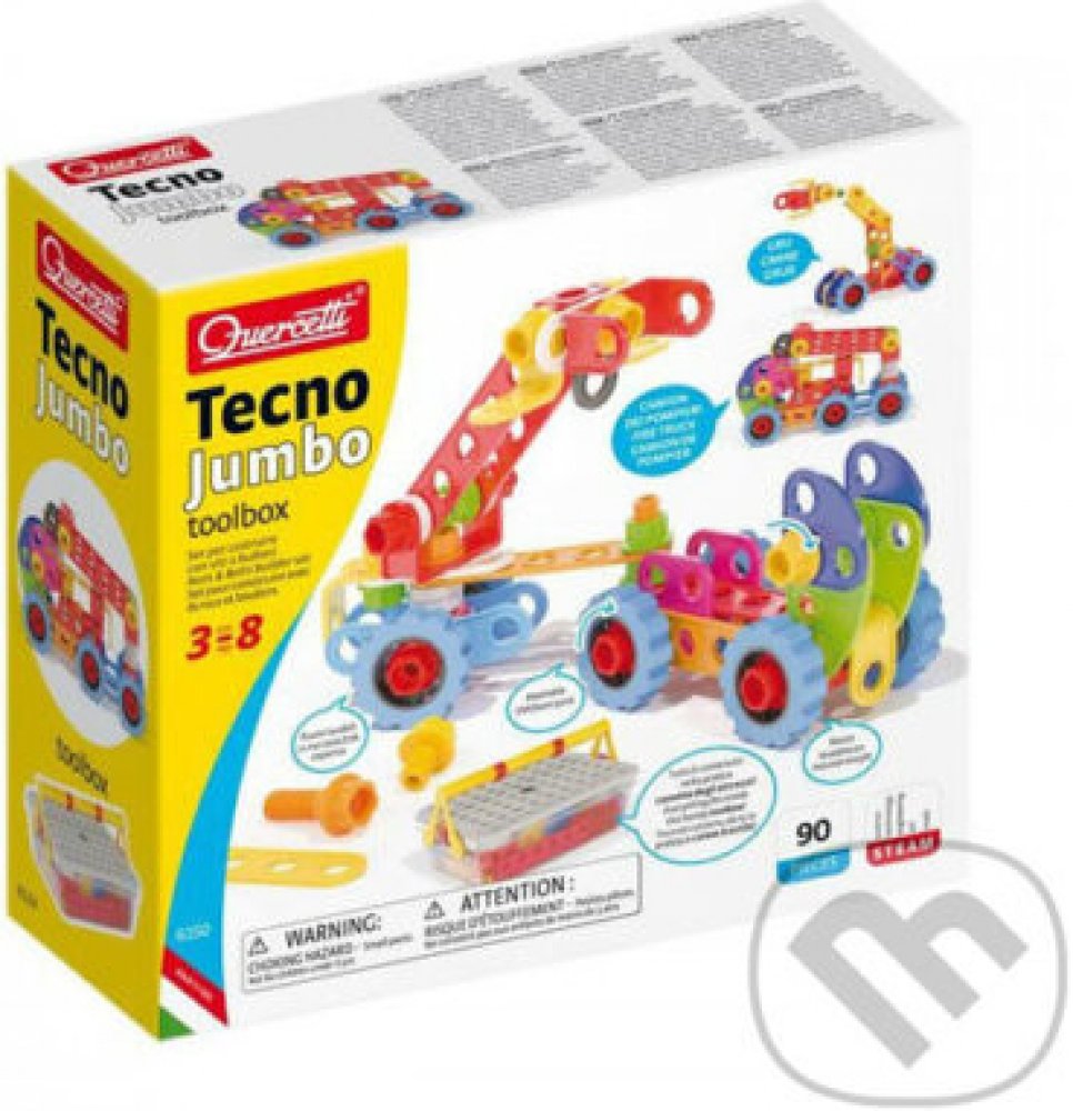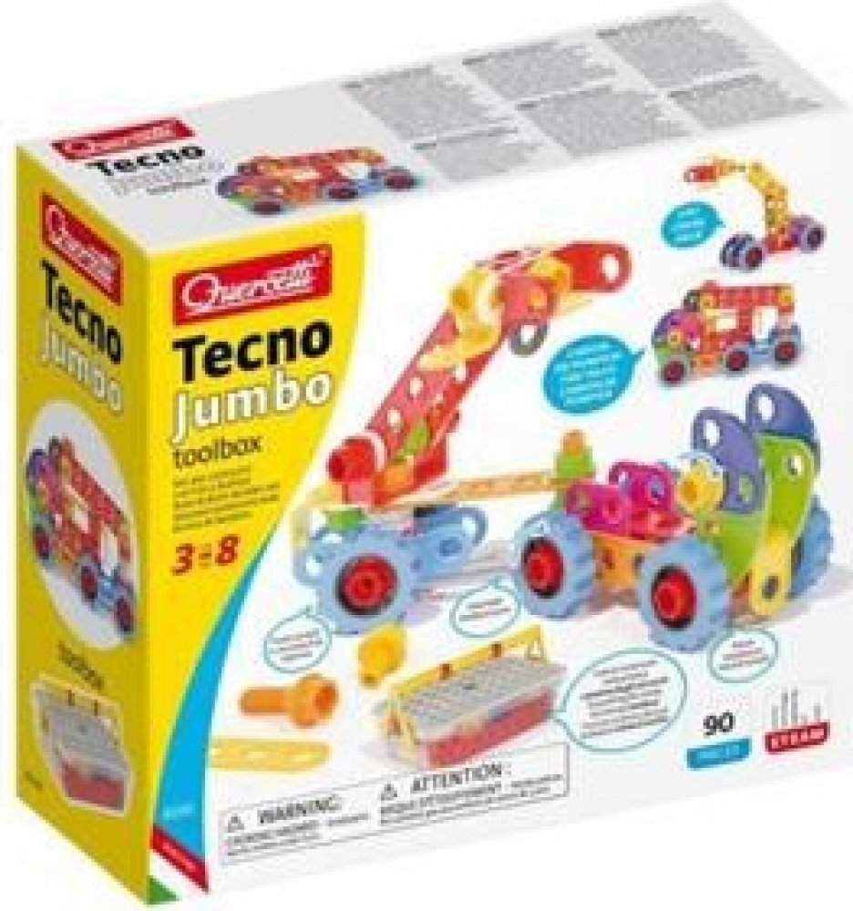 Tecno Jumbo toolbox obsahuje všechno, co malí konstruktéři potřebují k sestrojení nákladních aut, bagrů, jeřábů nebo čehokoli dalšího, co jim přijde na mysl.