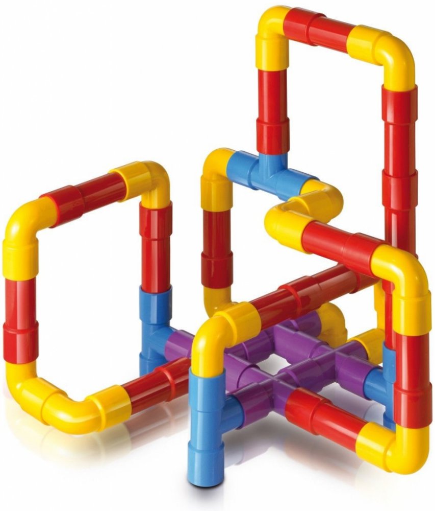 Stavebnice se skládá ze 40 barevných do sebe zapadajících dílů různých tvarů. Lze z ní vytvořit např. nekonečné labyrinty potrubí, prostorové tvary, lešení, budovy, zvířata, a dokonce i foukačku či cokoli jiného dle dětské fantazie.