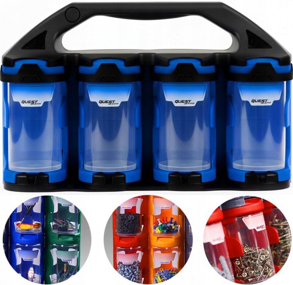 Organizér Q2x8 je jeho nejmenší verzí obsahující 8 nádob Questsystem typu Q2. Díky malým rozměrům je ideálním doplňkem regálu Q2 MOBILE, kdy potřebujeme najednou přepravit několik kontejnerů.