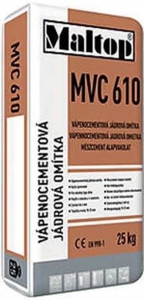 Quick-mix MVC 610 je vápenocementová jádrová omítka pro ruční zpracování v exteriéru i interiéru. Vlastnosti zrnitost 0-4 mm, spotřeba suché směsi 16 kg/m2/10 mm tloušťky vrstvy. Balení ve 25kg papírových pytlech, 48 ks / paleta: 1200 kg.