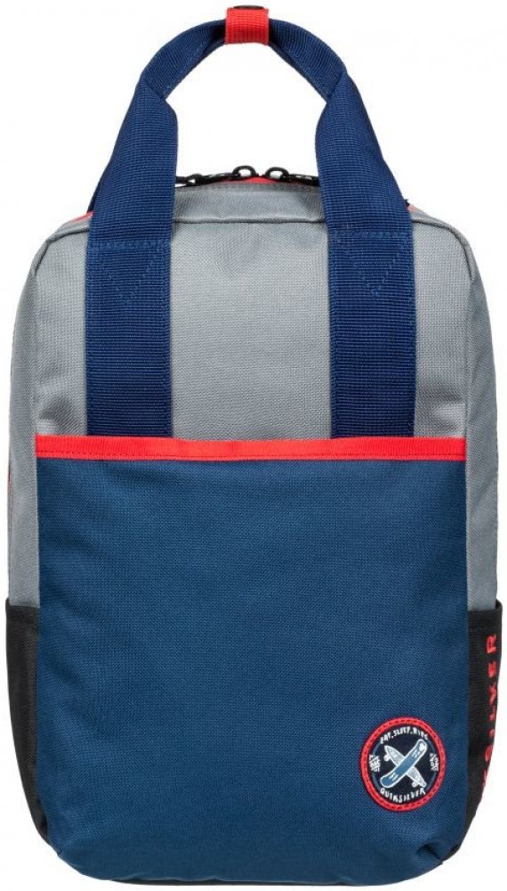 malý dětský modrošedý batůžek 7l pro začínající cestovatele s jedním hlavním oddělením na zip s vnitřní přihrádkou na dětské drobnosti, vnější kapsou a dvěma bočními kapsami, polstrovaným zádovým systémem a dvěma držadly pro přenášení